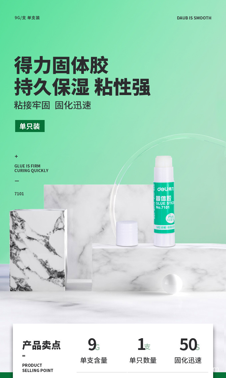 델리 7101 고체 접착제 스틱 12개 작은 크기 9g 고점도 유치원 어린이 수공예 수업 접착제 9g