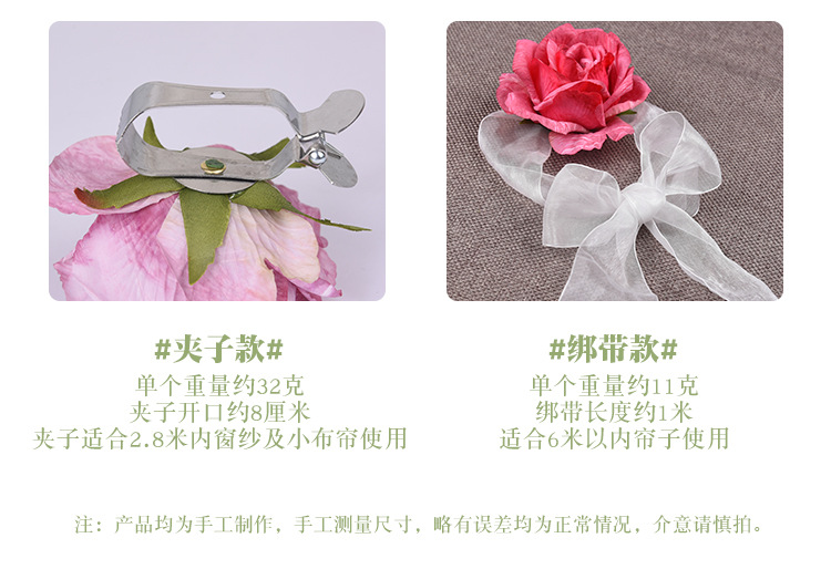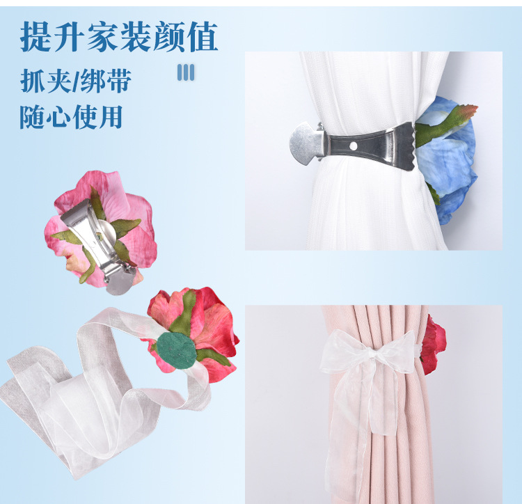 커튼 스트랩, 인공 꽃, 장미 커튼 액세서리, 가볍고 고급스럽고 귀여운 작은 신선한 꽃 커튼 액세서리