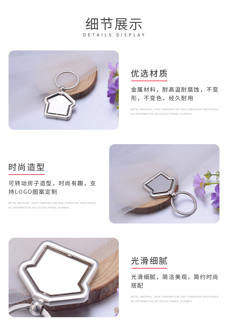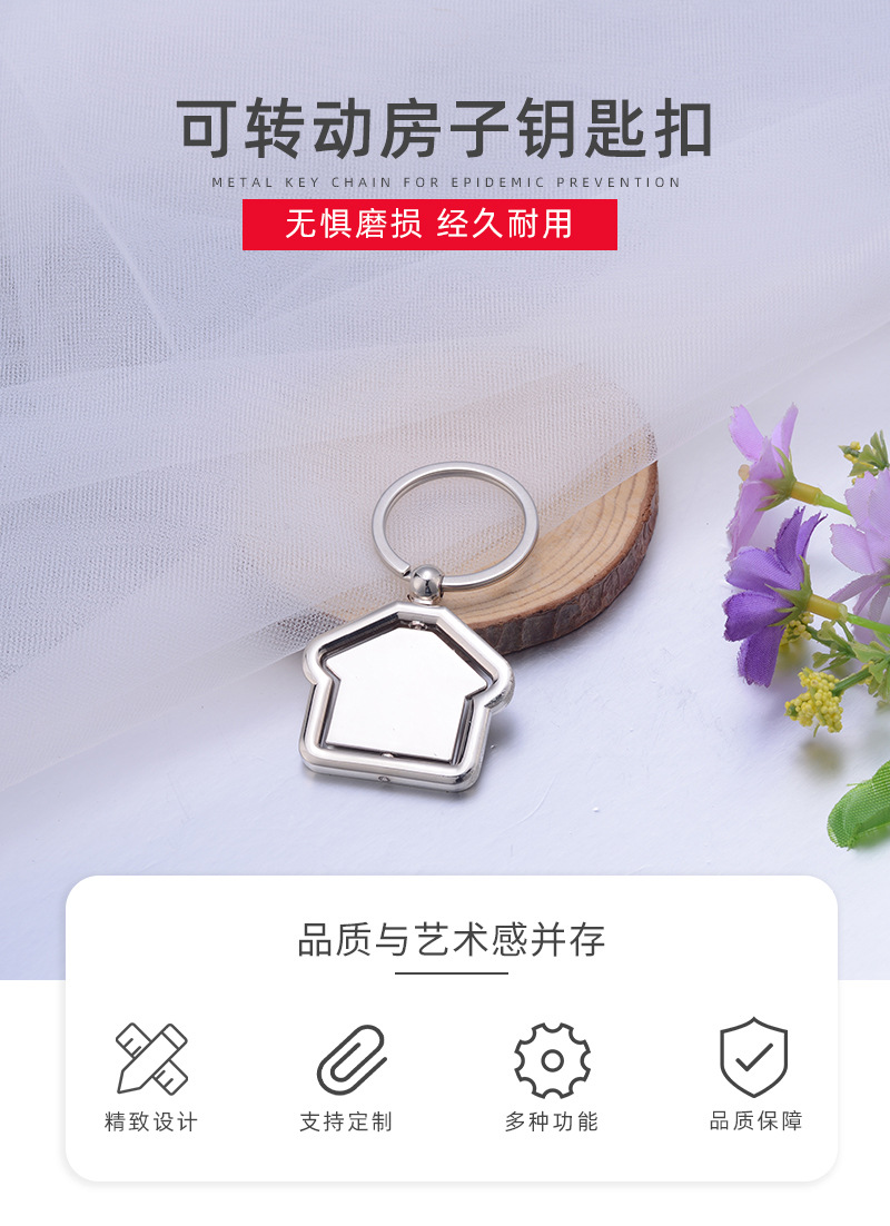 360도 회전 하우스 키체인, 창의적인 회전 하우스 모양 키체인, 양면 각인, 로고 주문스토어 가기