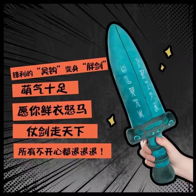 Yue Wang Goujian 검 플러시 귀여운 인형 Wu Wang Fu Cai 검 크리 에이 티브 베개 어린이 게임 빅 뚱뚱한 검스토어 가기