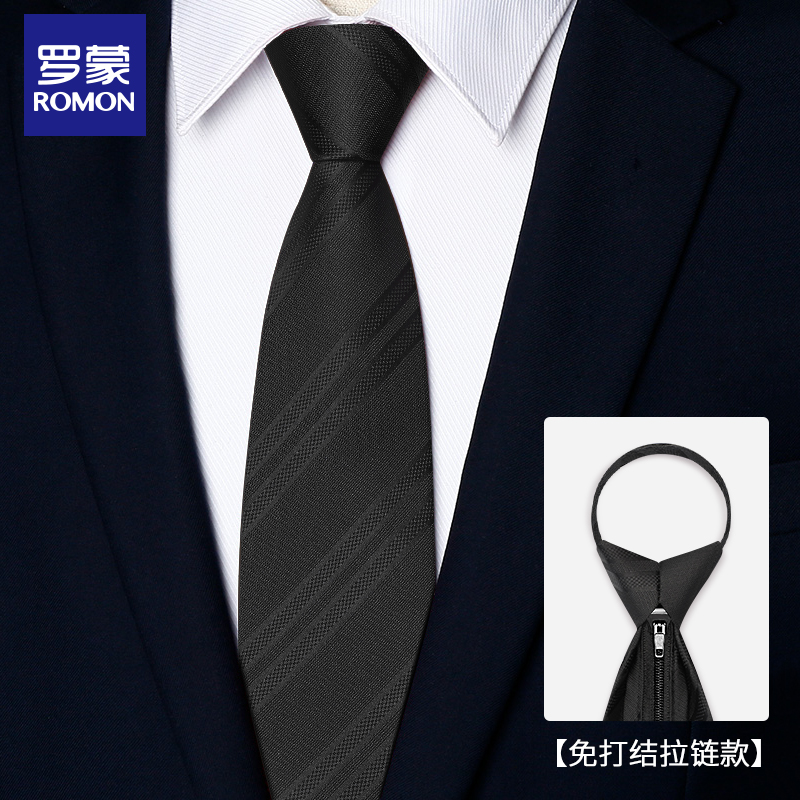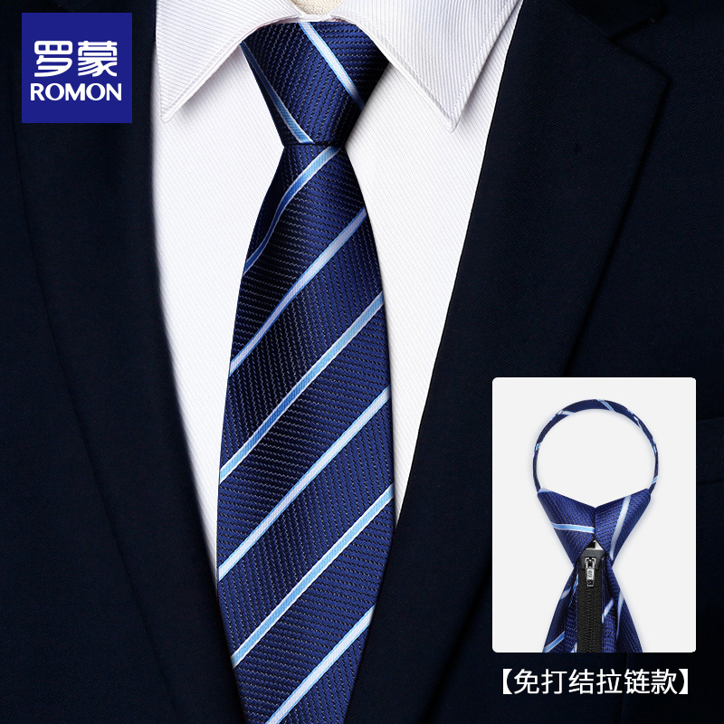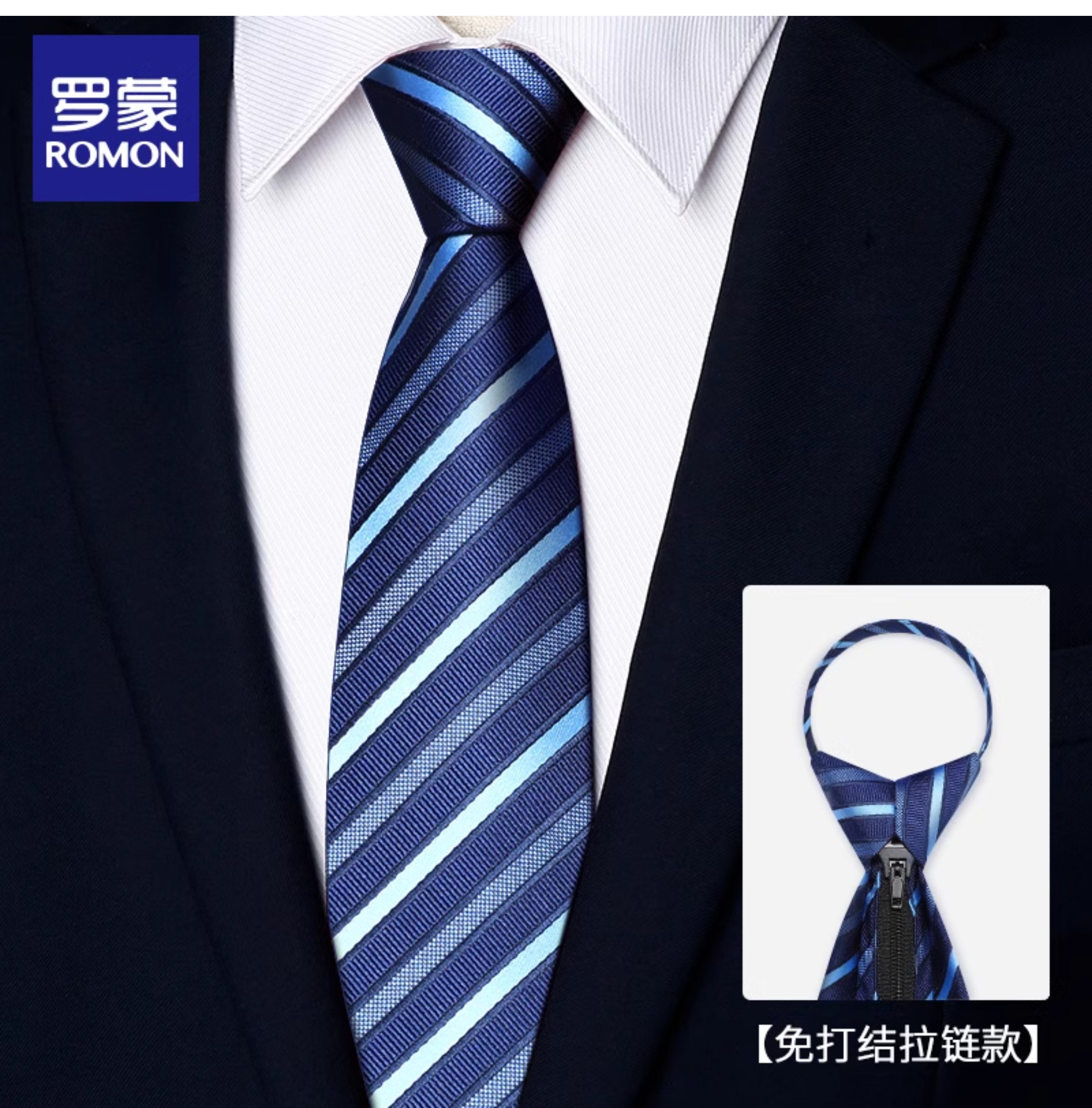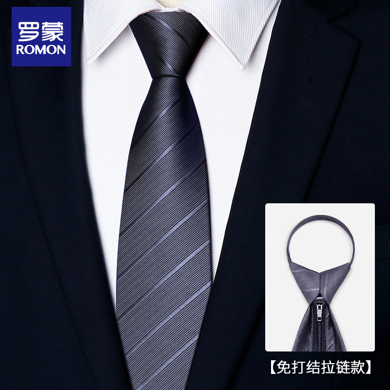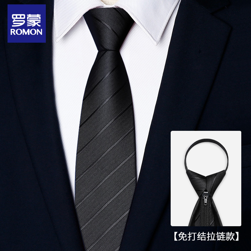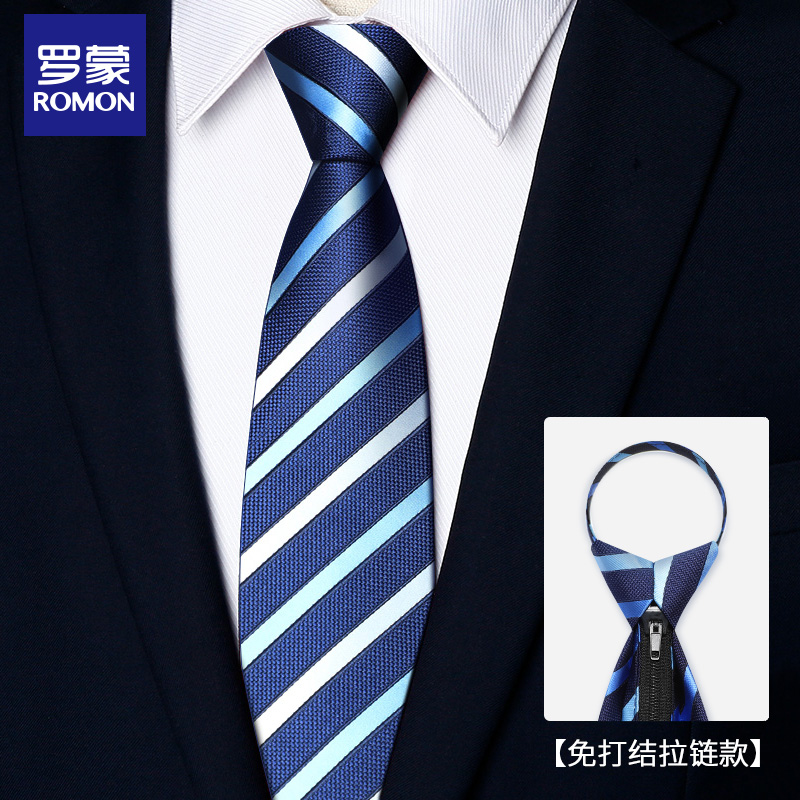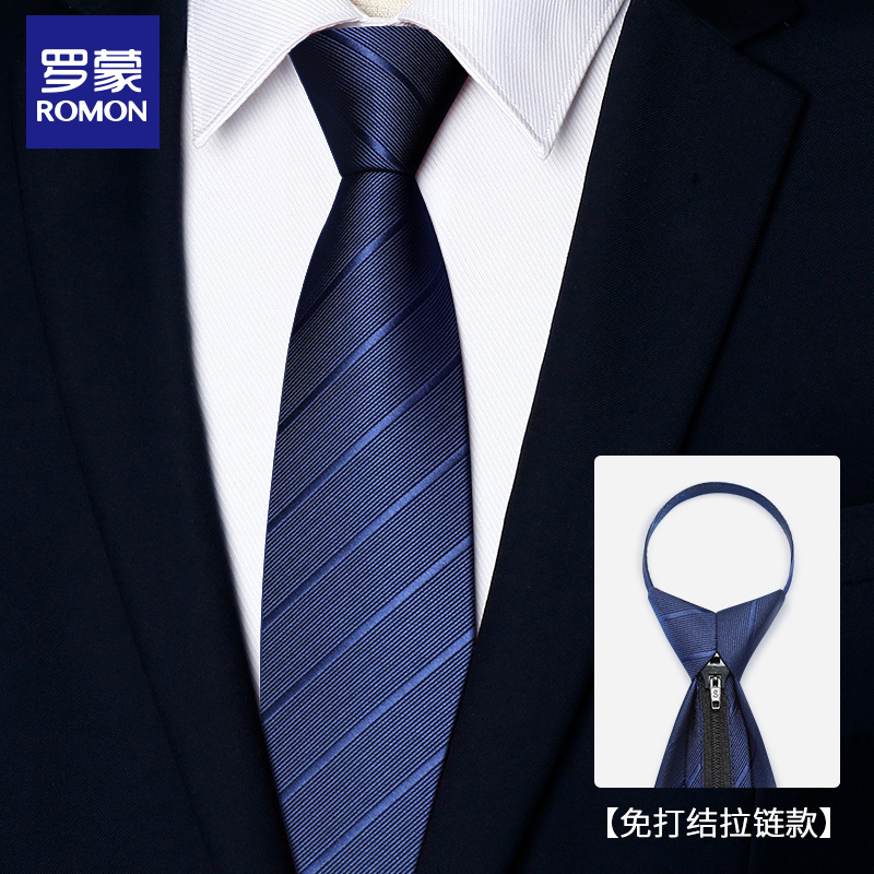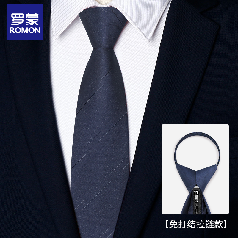 로몬 넥타이 남성 정장 비즈니스 블루 블랙 트렌디 매듭없는 지퍼 스타일 게으른 작업 셔츠 정장 8cm스토어 가기