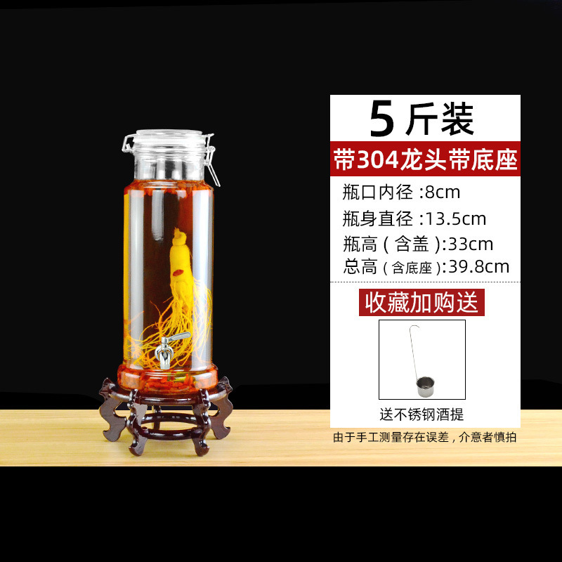 와인 유리병, 두꺼운 와인 항아리, 가정용 밀봉 항아리, 수도꼭지가 있는 인삼 와인 병, 2.5kg 팩 와인 항아리