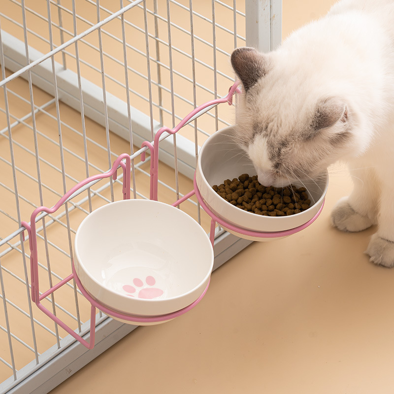 • [업그레이드된 행잉 케이지 그릇] 페인팅 캣 더블 그릇 더블 스탠드
