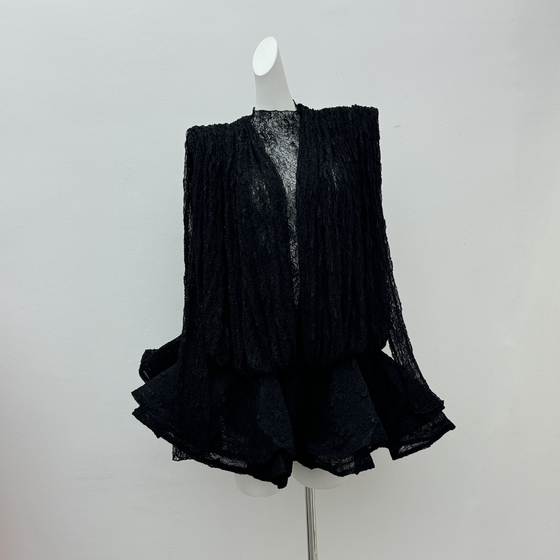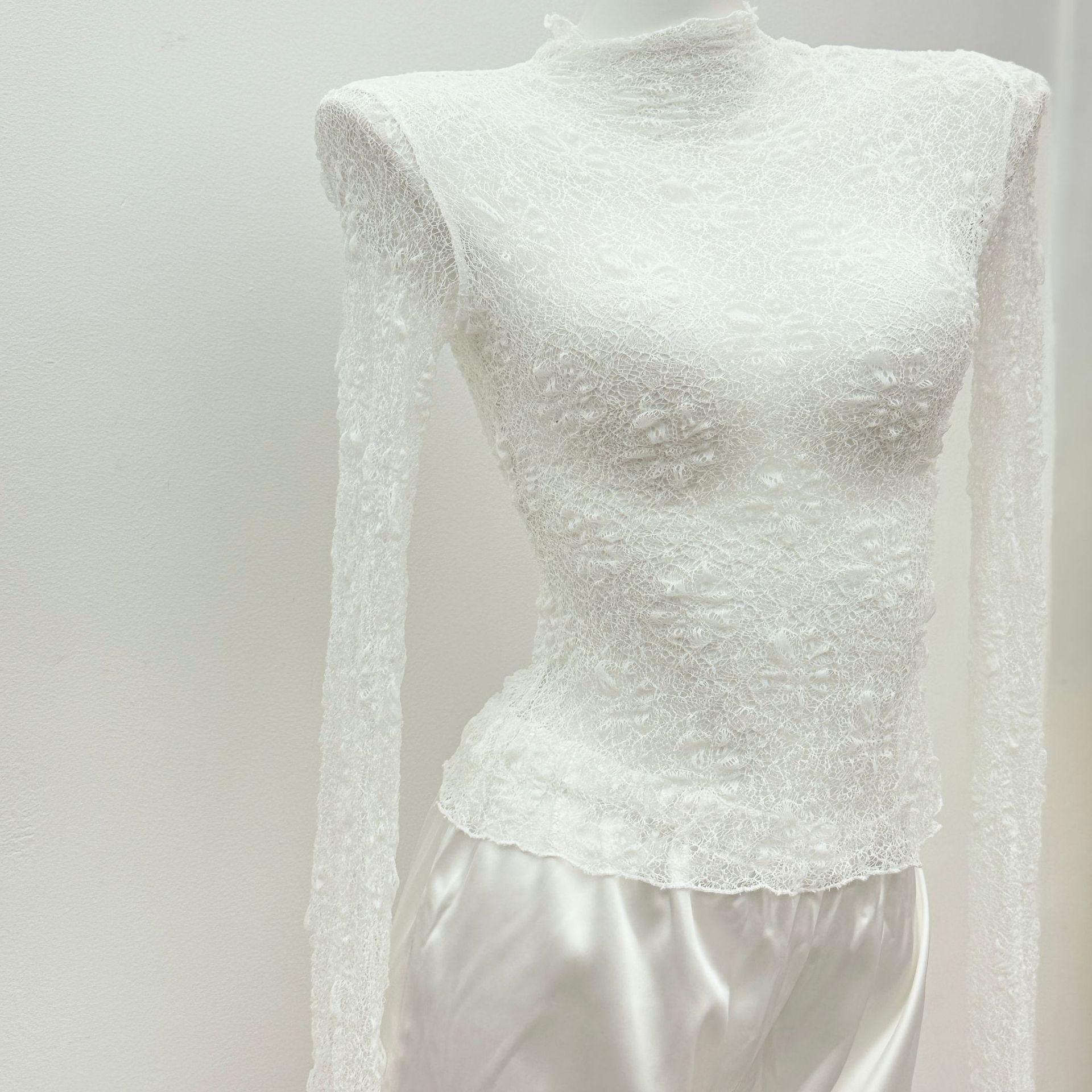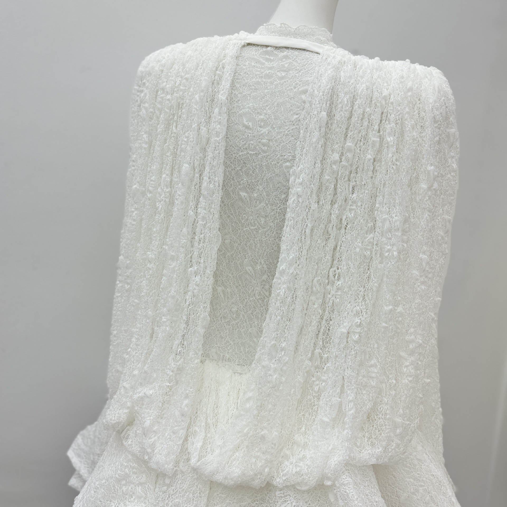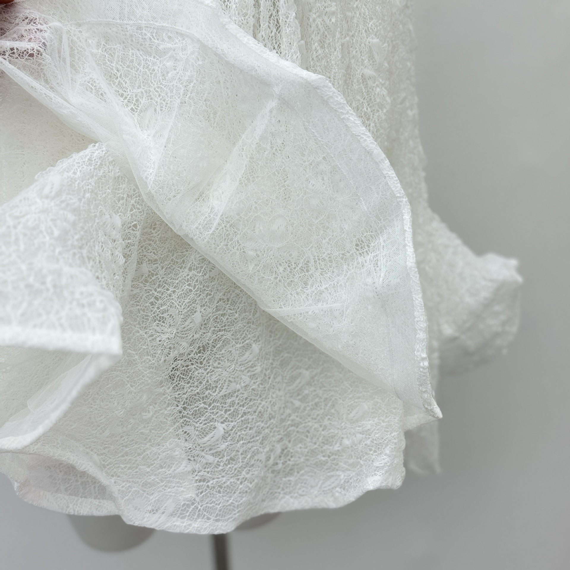 베트남의 독특한 스타일, 몽환적인 소용돌이 속에 빠져들다, 레이어드된 신축성 있는 허리밴드와 넓은 밑단의 투피스 화이트 레이스 드레스스토어 가기