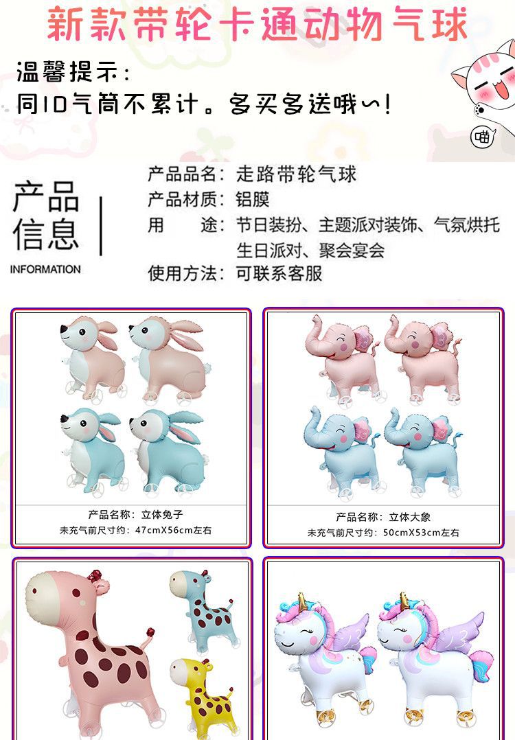바퀴가 달린 인터넷 연예인의 새로운 동물 걷기 풍선, 어린이 사진 촬영, 생일 장식, 야외 장난감, 야시장 매점스토어 가기