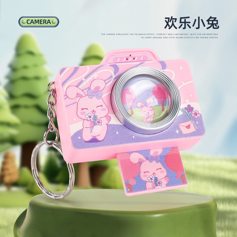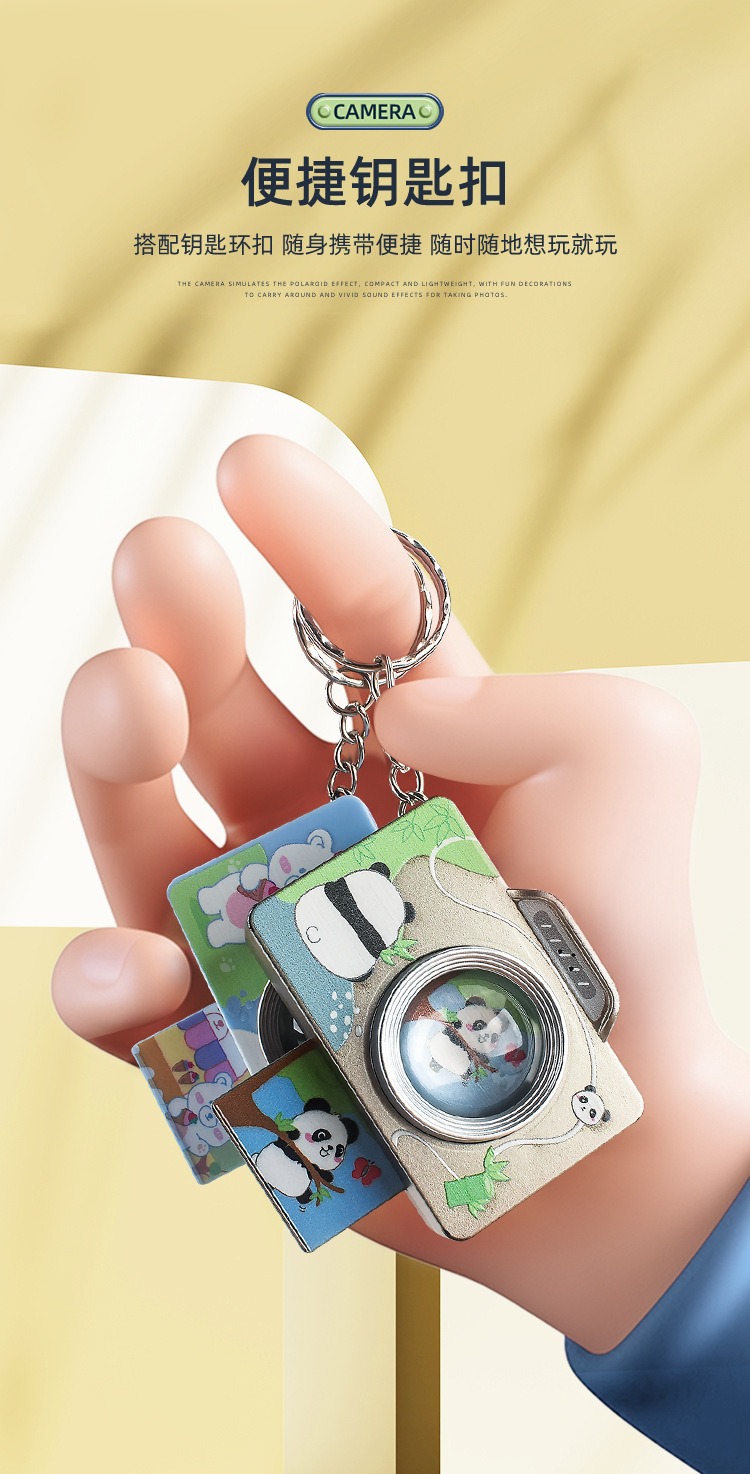 국경 간 만화 빛나는 복고풍 카메라 키 체인 미니 폴라로이드 사운드 카메라 가방 펜던트 작은 선물