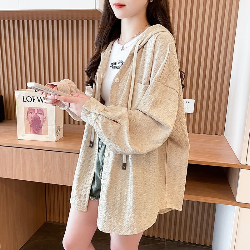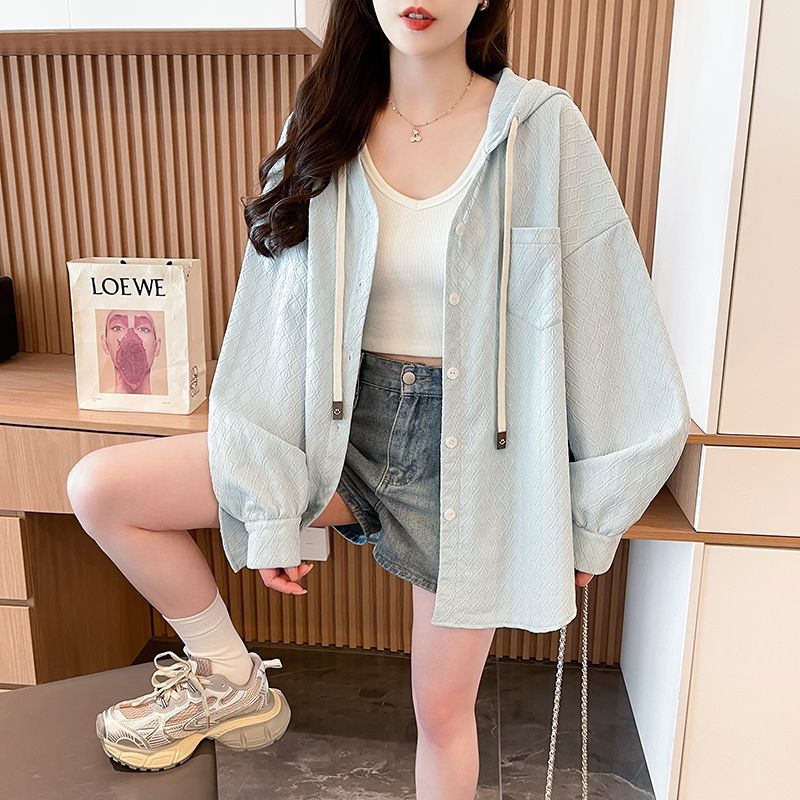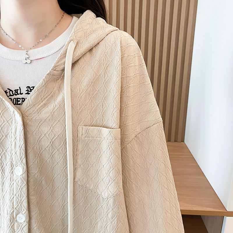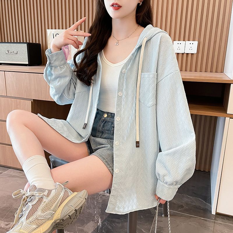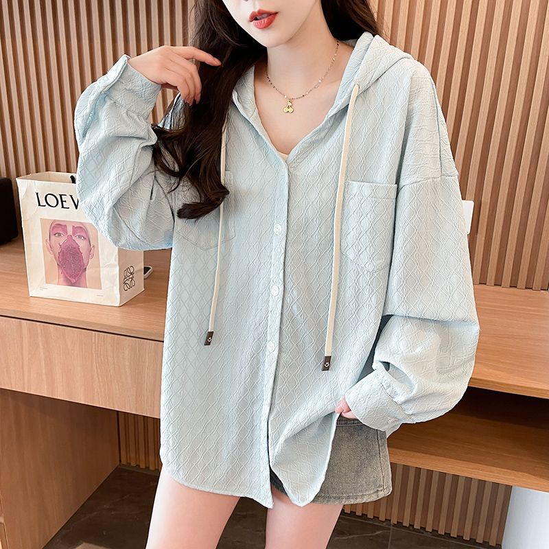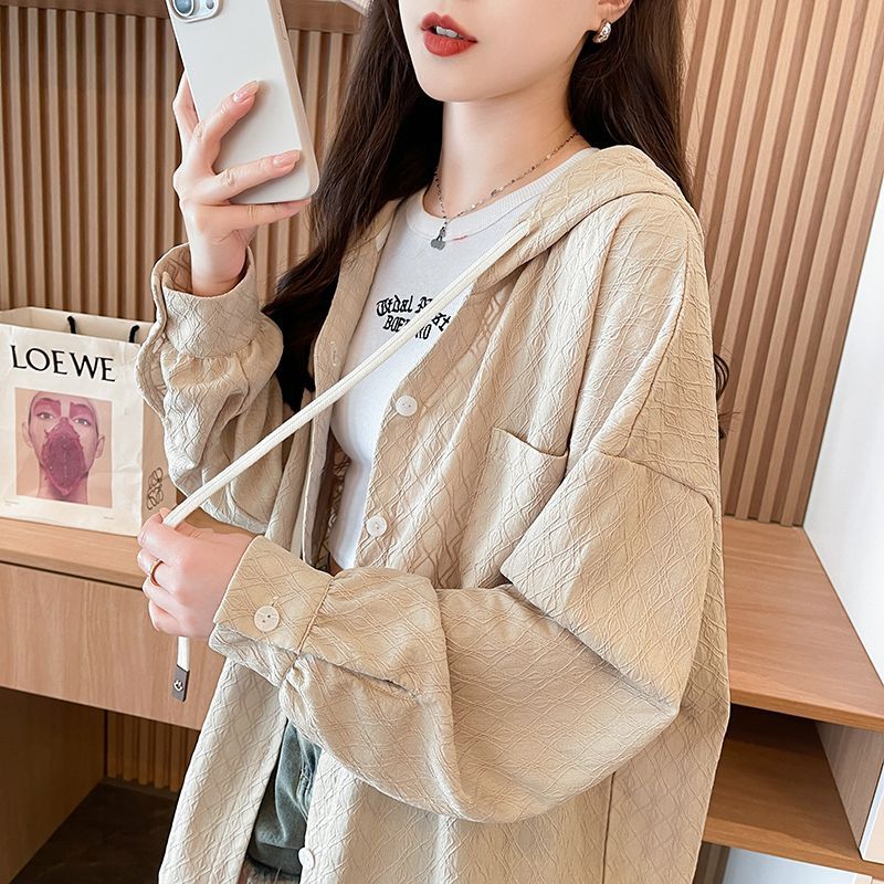 여성용 봄 여름 셔츠 2025 새로운 한국 스타일 틈새 디자인 루즈 캐주얼 게으른 스타일 후드 얇은 재킷