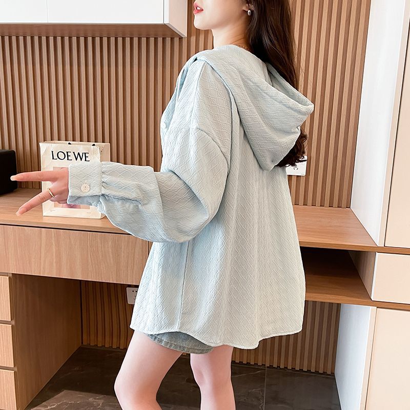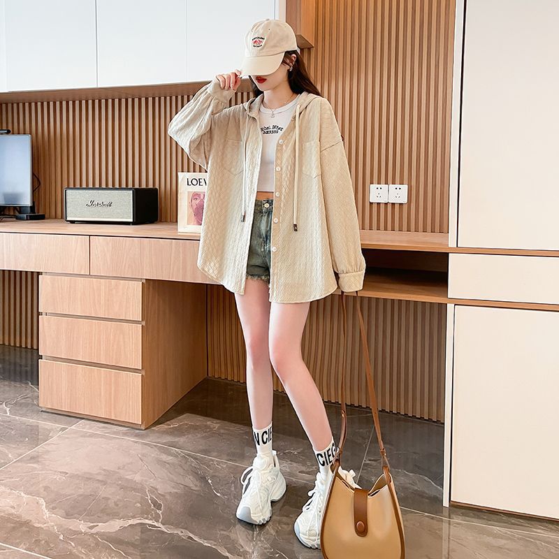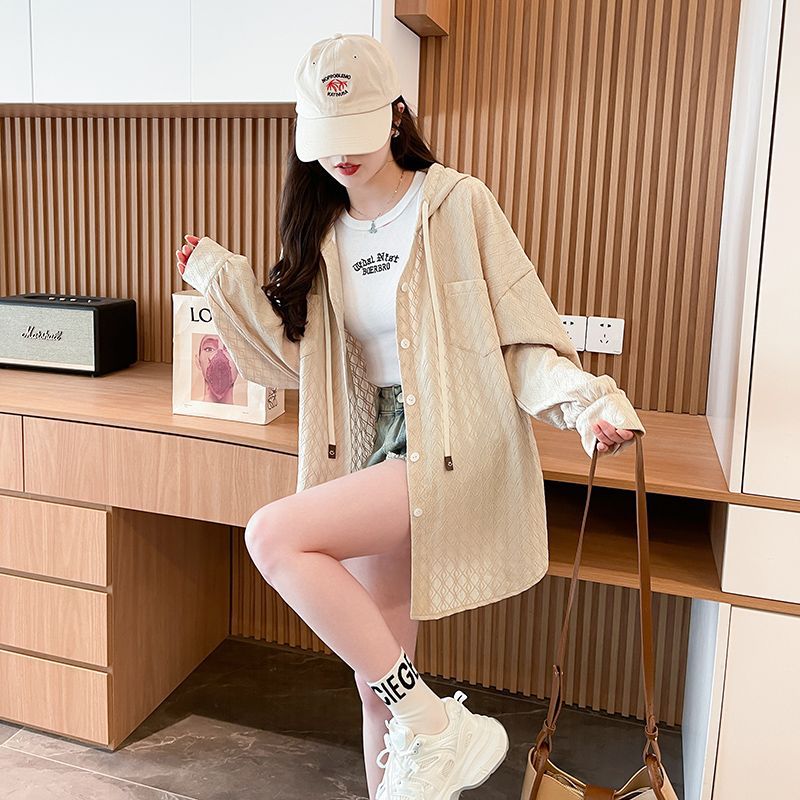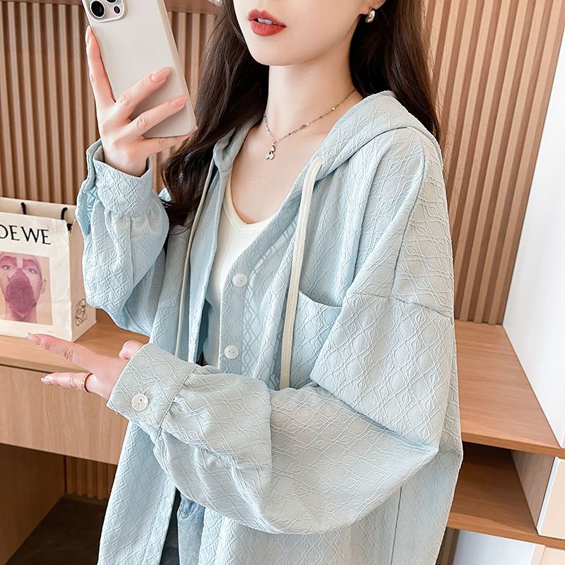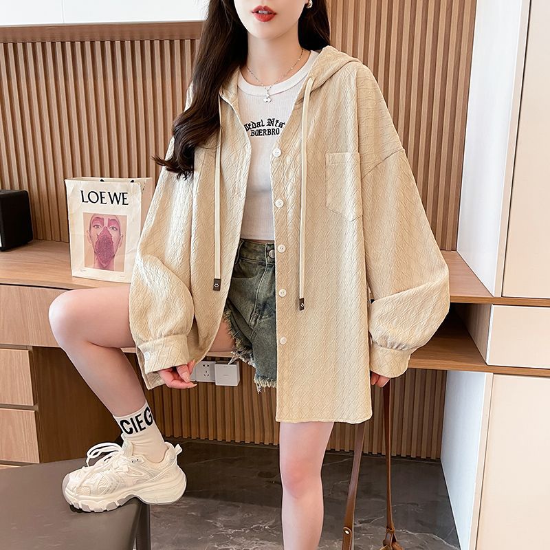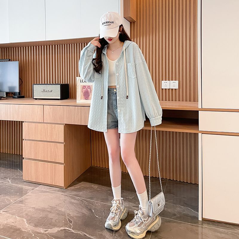 여성용 봄 여름 셔츠 2025 새로운 한국 스타일 틈새 디자인 루즈 캐주얼 게으른 스타일 후드 얇은 재킷