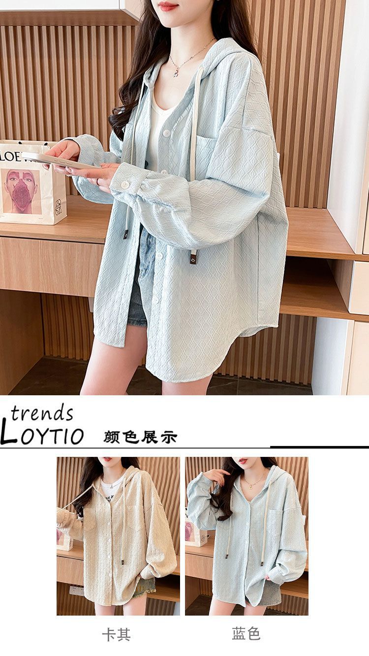여성용 봄 여름 셔츠 2025 새로운 한국 스타일 틈새 디자인 루즈 캐주얼 게으른 스타일 후드 얇은 재킷스토어 가기
