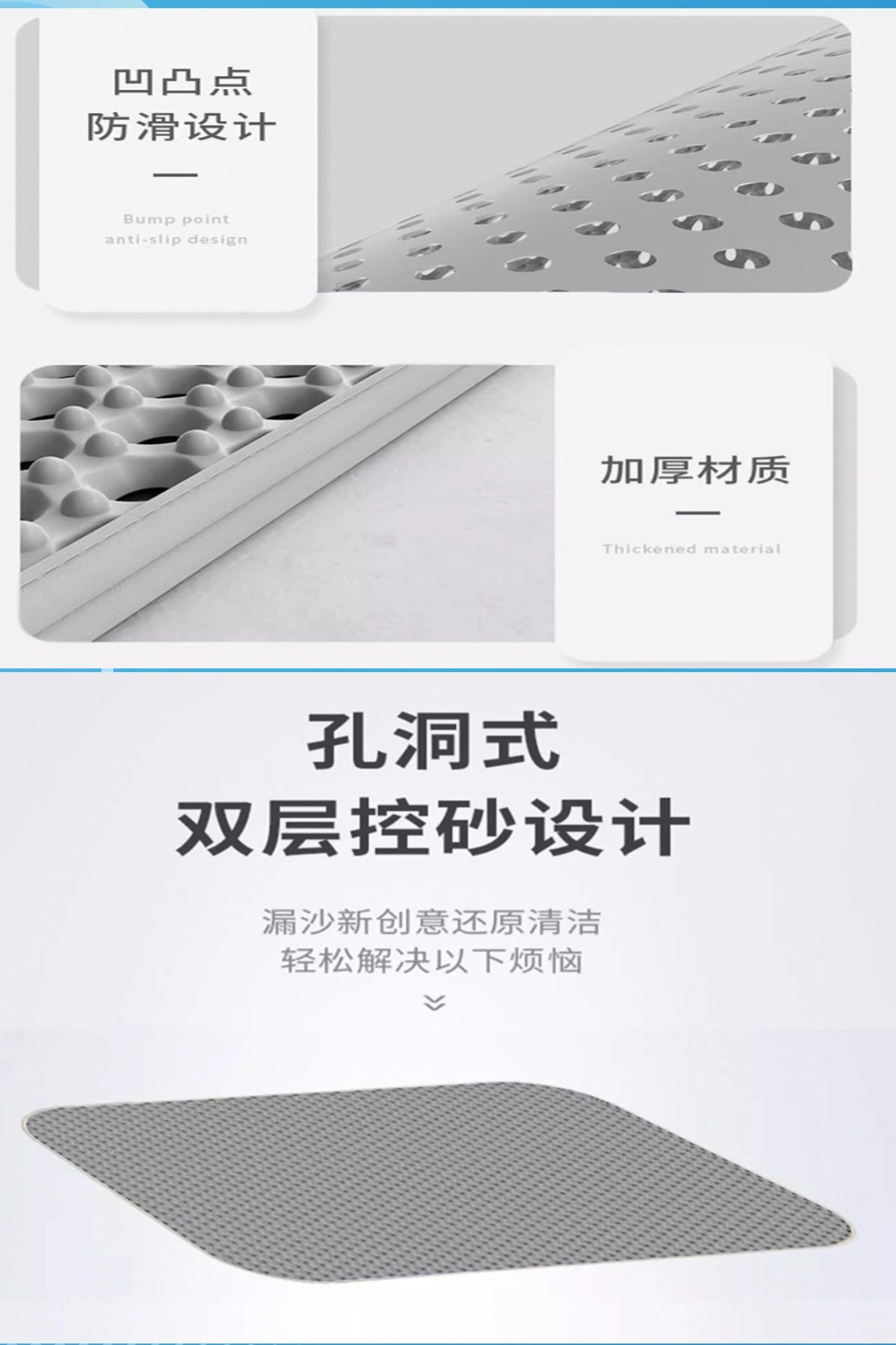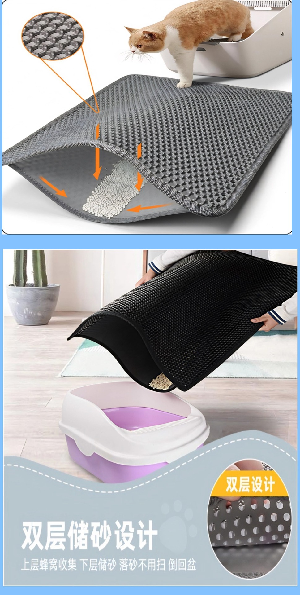 애완 동물 EVA 미끄럼 방지 고양이 모래 통과 모래 필터 매트 내마모성 및 긁힘 방지 이중층 세척 가능한 고양이 모래 매트 재고 있음