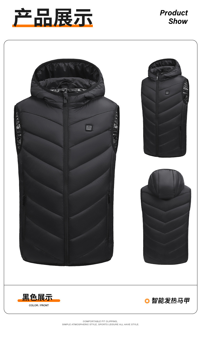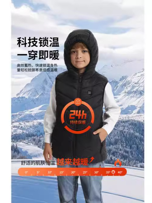 국경 간 소년과 소녀 후드 조끼 USB 충전 난방 조끼 내한성, 방풍, 방수, 고온 및 따뜻한 난방스토어 가기