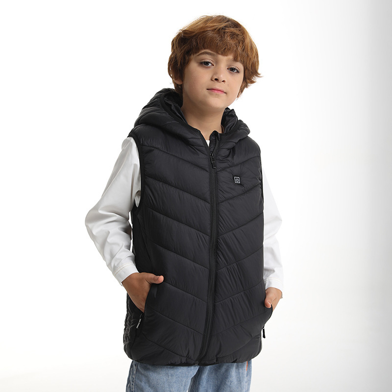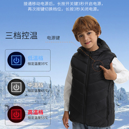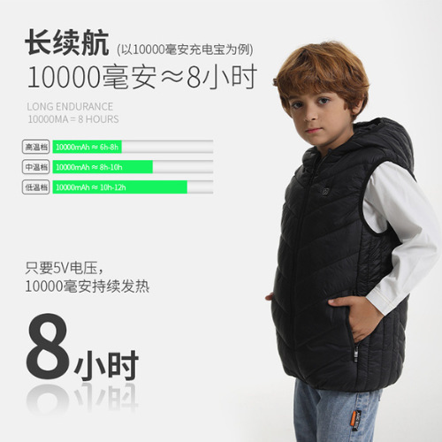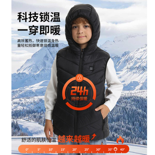 국경 간 소년과 소녀 후드 조끼 USB 충전 난방 조끼 내한성, 방풍, 방수, 고온 및 따뜻한 난방