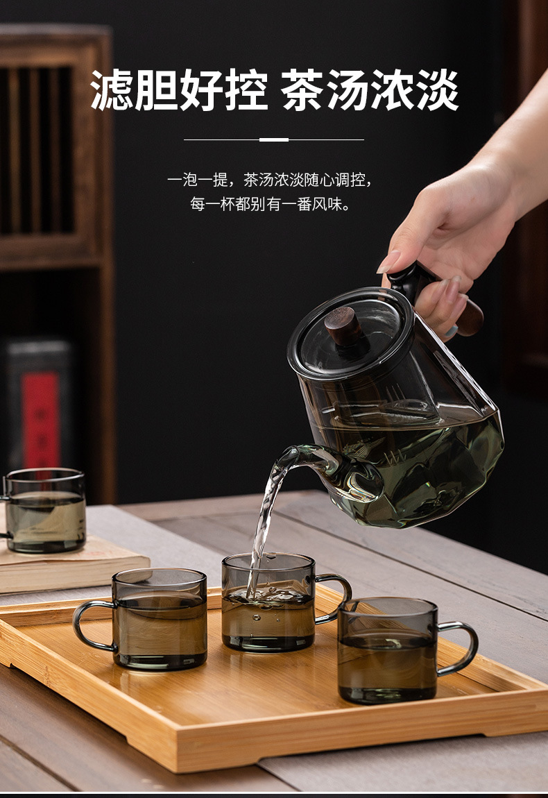 차 주전자, 가정용 차와 물 분리 주전자, 두꺼운 고온 방지 대용량 두꺼운 유리 차 세트 단일 주전자스토어 가기