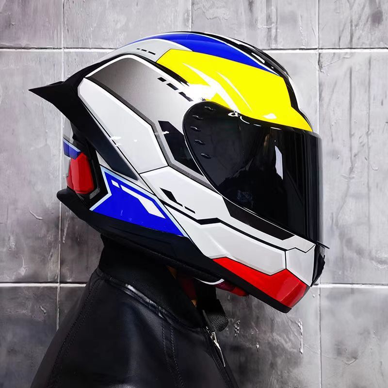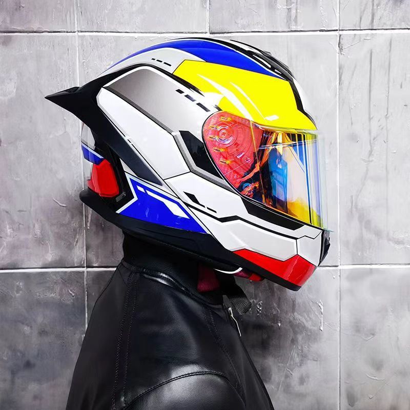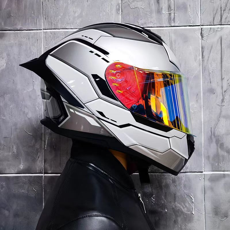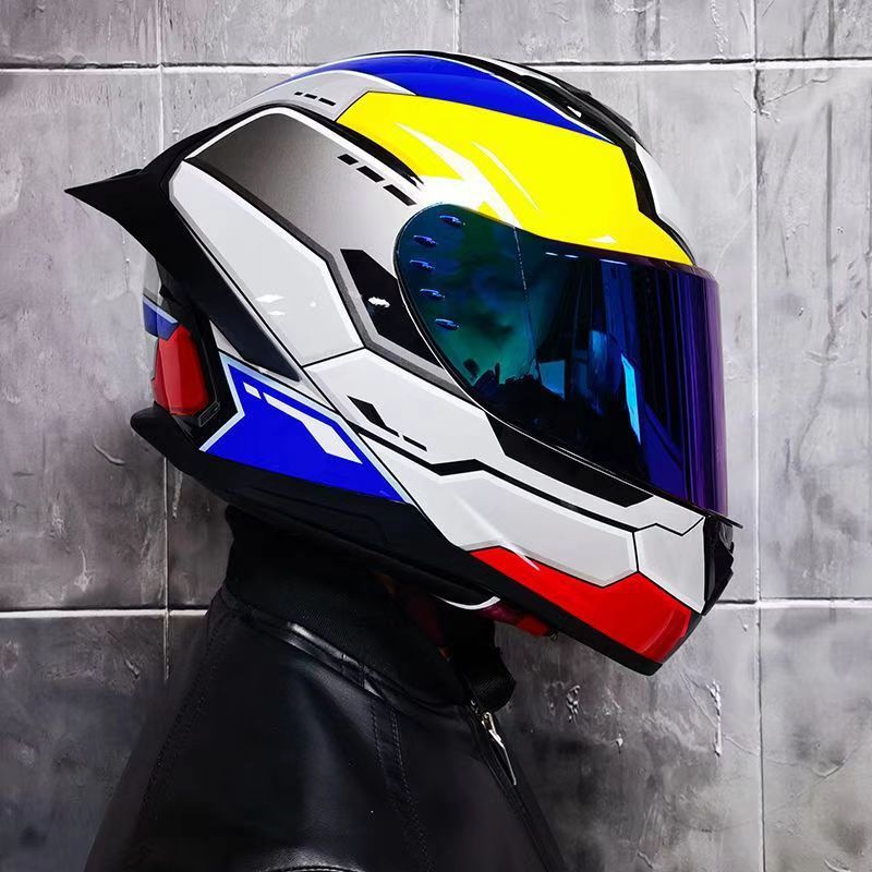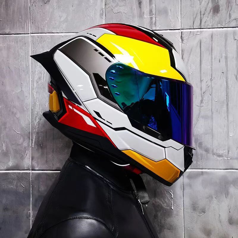 오토바이 헬멧 남성용 및 여성용 풀 페이스 헬멧 겨울 헬멧 오토바이 건담 맞춤형 대형 테일 윙 Bluetooth 3C 인증스토어 가기