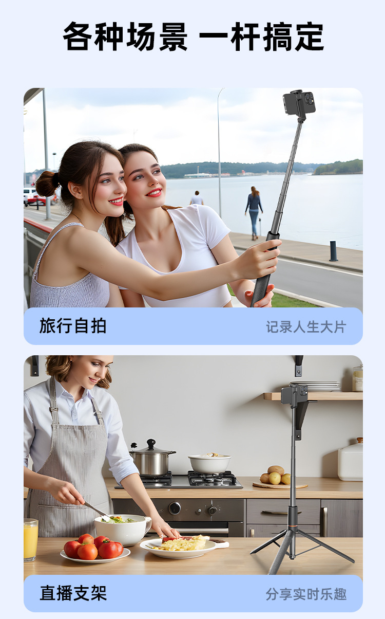 1.6m 스마트 올인원 고급형 확장형 수평 및 수직 전환 휴대폰 셀카봉 온라인 수업 라이브 방송 삼각대스토어 가기