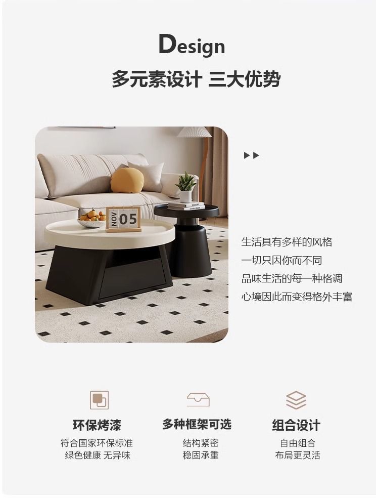 서랍이 있는 둥근 커피 테이블 조합, 크림 스타일, 심플한 거실, 고급 프렌치 라이트 럭셔리, 미니멀리스트 소형 사이드 테이블스토어 가기
