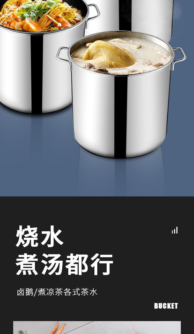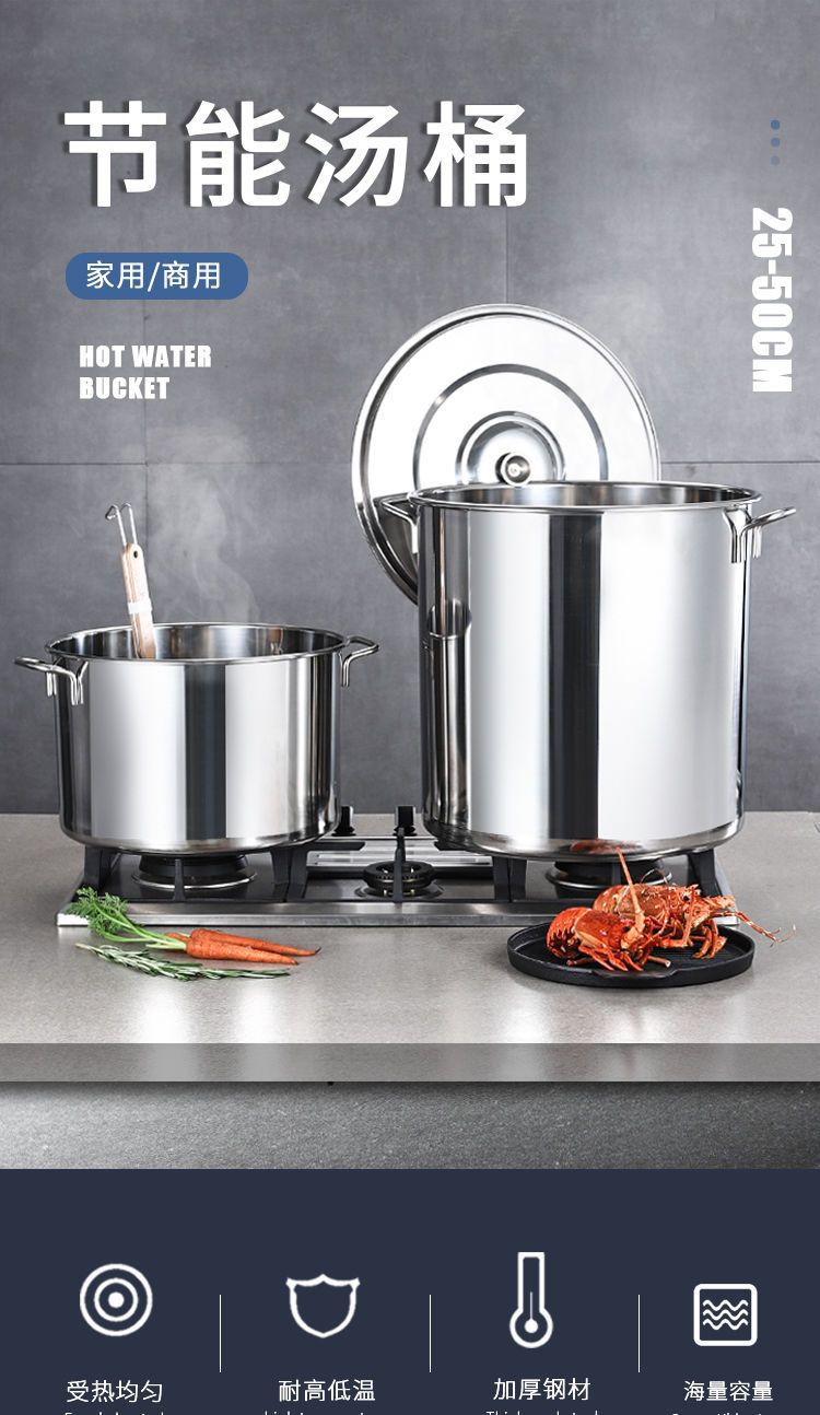 뚜껑이 있는 스테인레스 스틸 원형 통, 대형 수프 냄비, 상업용 수프 통, 두꺼운 가정용 소금물 통, 쌀 기름 통, 물을 끓이는 대용량 냄비스토어 가기
