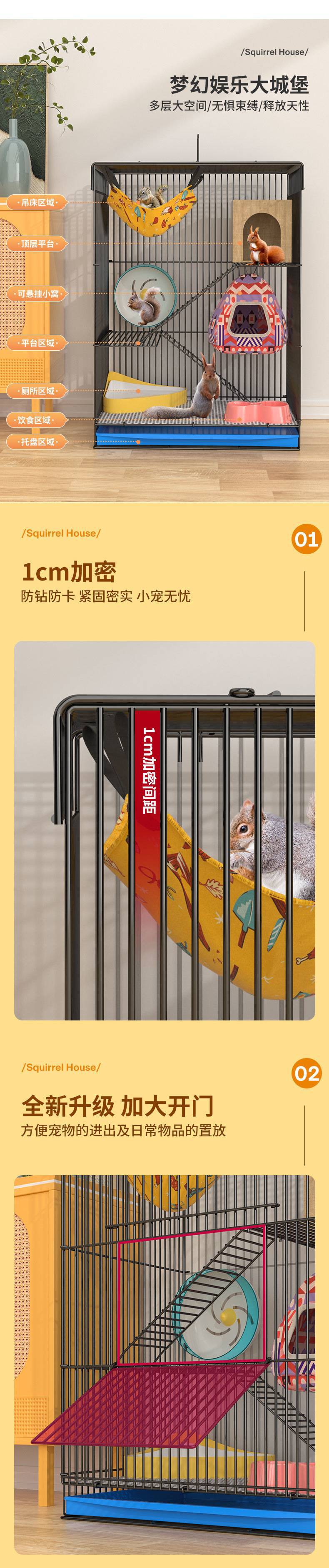 스웨이드 특수 케이지, 3층 다람쥐 케이지, 친칠라 케이지, 스웨이드 케이지, 대형 빌라 햄스터 케이지, 두꺼운 문