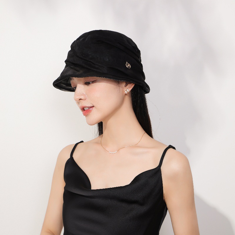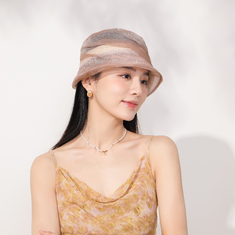 흰머리를 가리는 100% 뽕나무 실크 예술적 어부 모자 여성용 봄 여름 자외선 방지 경량 분지 모자 태양 모자