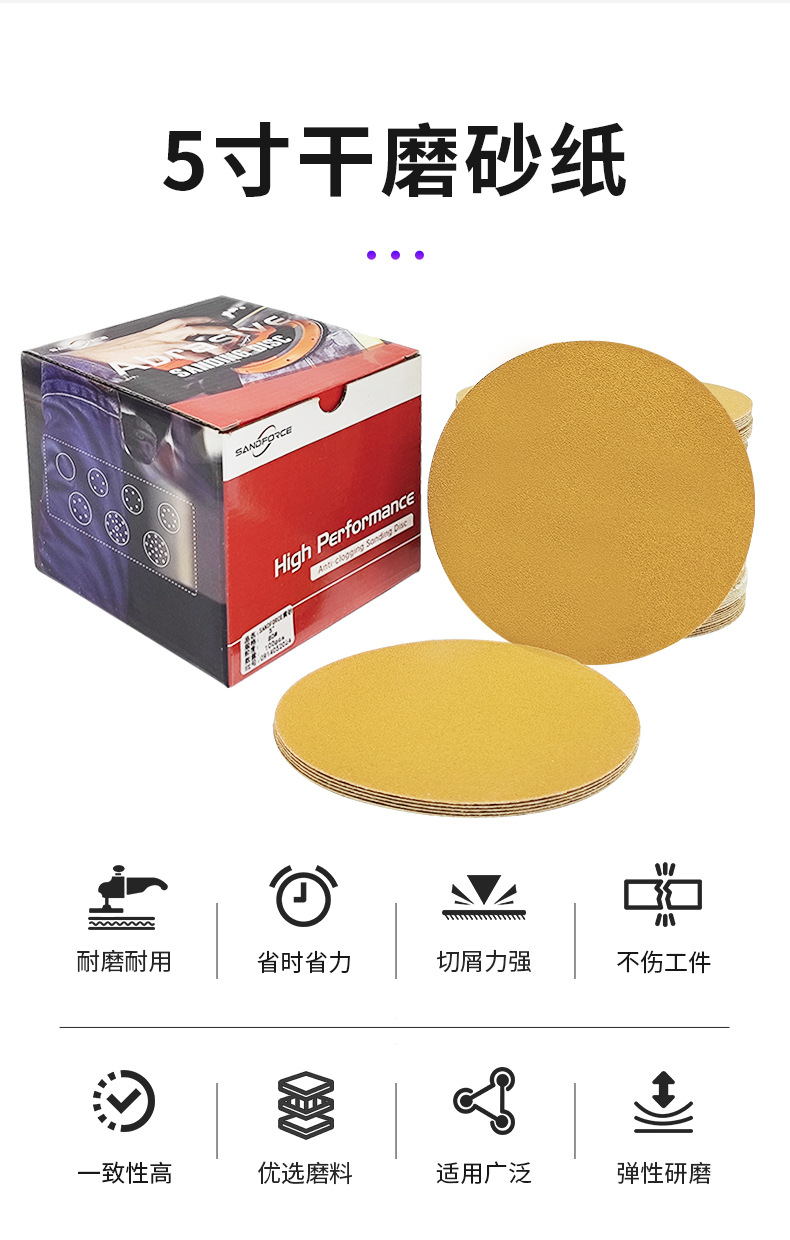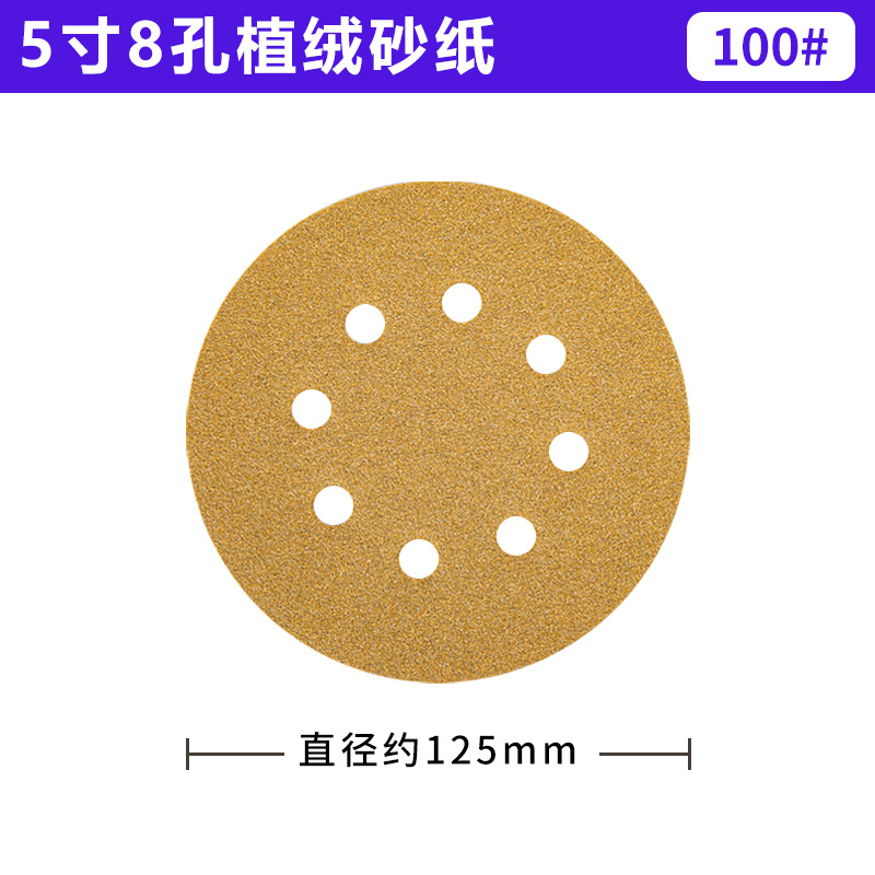 노란색 모래 플로킹 사포 5inch 골드 샌딩 건식 연삭 자체 접착 벨벳 사포 브러시드 디스크 노란색 사포