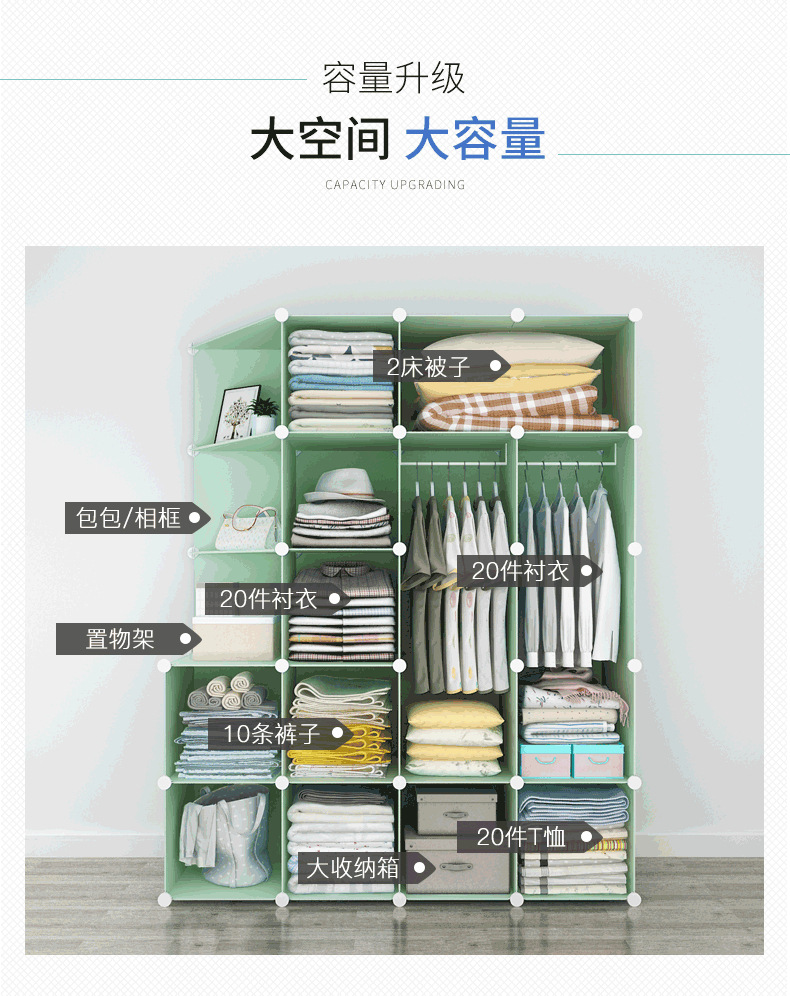 가정용 침실 임대실을 위한 간단한 옷장 조립 보관 캐비닛 어린이 보관 캐비닛 강한 플라스틱 천 옷장스토어 가기