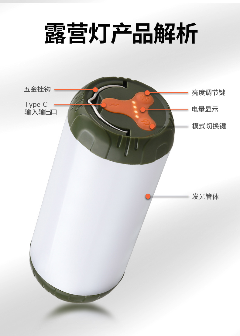야간등 80시간 지속 대용량 배터리 LED 가정용 IP68 방수 야외 충전식 산악 캠핑등