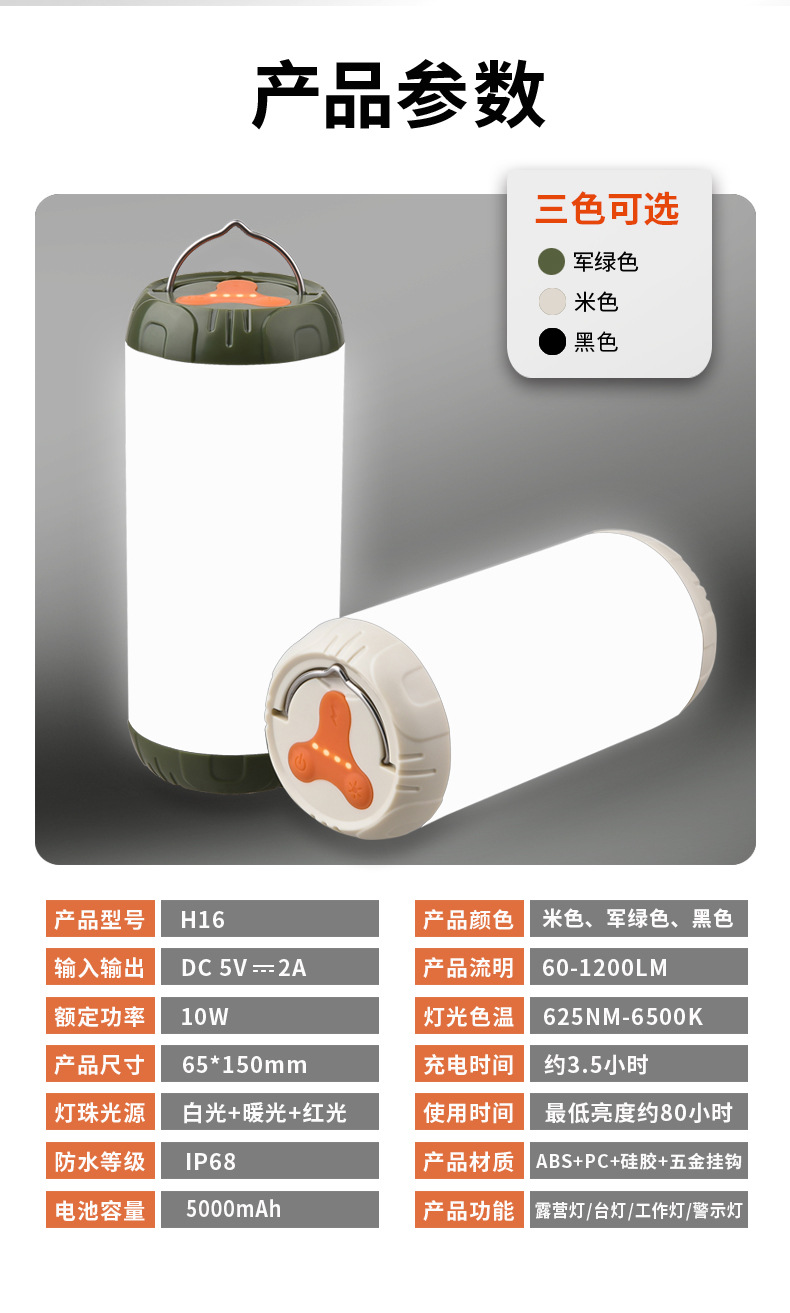 卖点 :3色切换、3档调节、防水