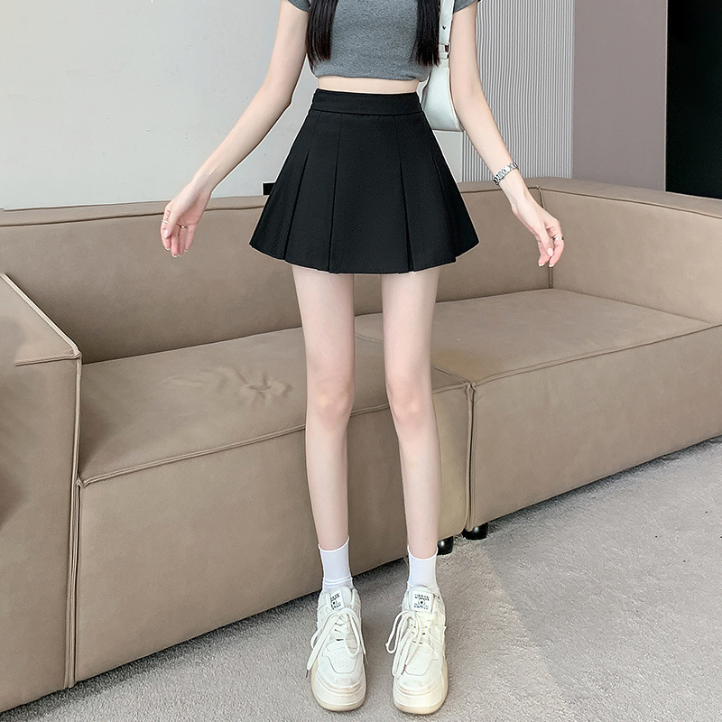 블랙 플리츠 스커트 짧은 스커트 여름 2024 새로운 핫 소녀 미니 스커트 작은 하이 웨이스트 정장 스커트스토어 가기
