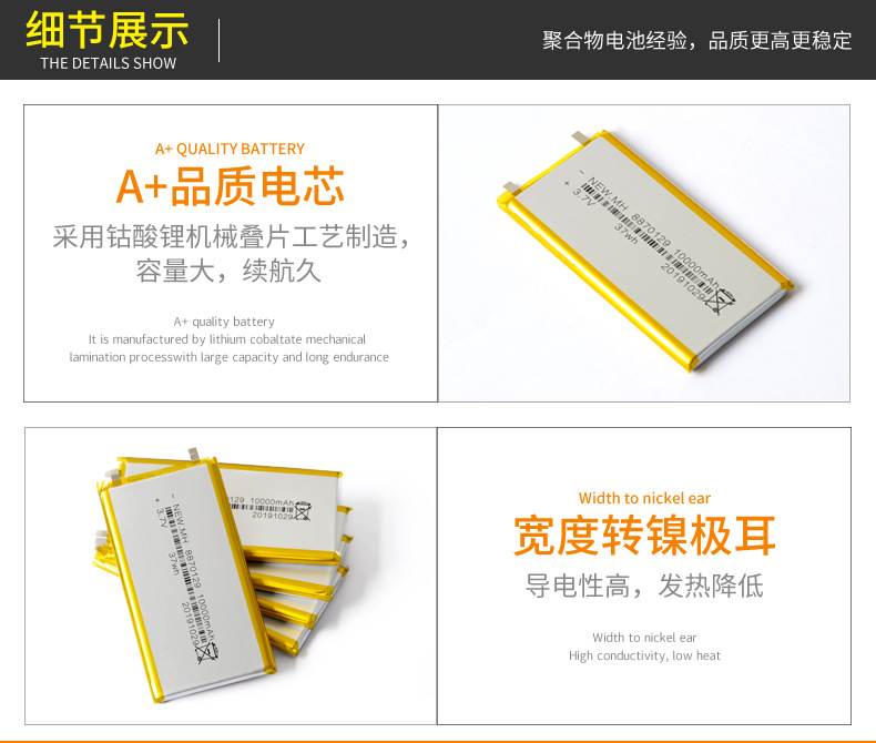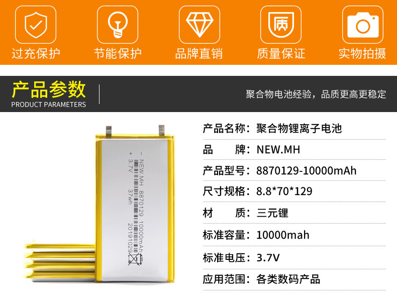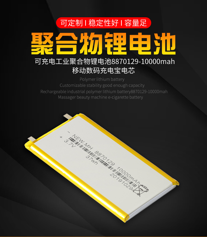 8870129 폴리머 리튬 배터리 3.7V10000mAh 충전 보물 모바일 전원 배터리