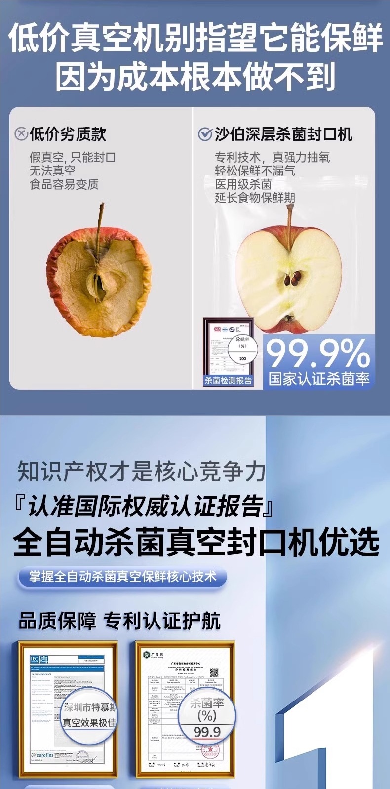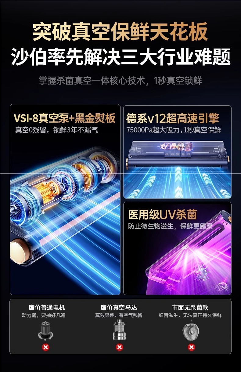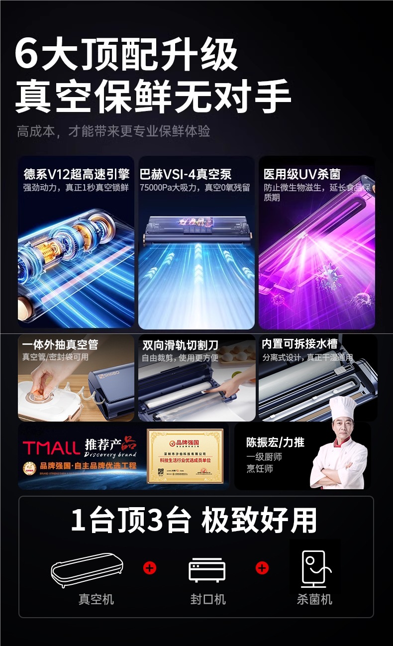 • [전자동 상단 구성] 75kPa 초강력 흡입력★1초 진공 잠금★자외선 살균★자체 절단기★오리지널 진공 롤백*3