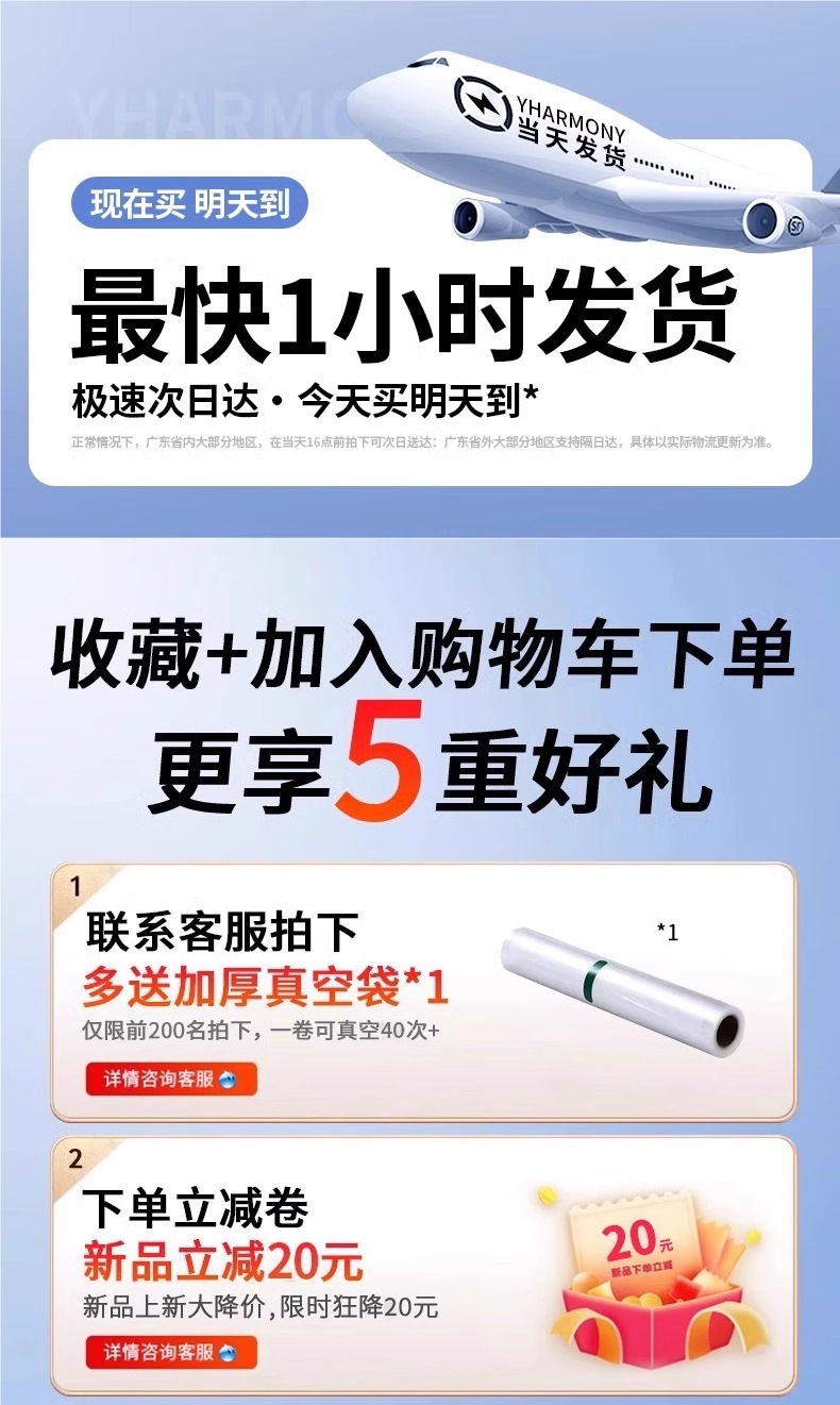 • [전자동 상단 구성] 75kPa 초강력 흡입력★1초 진공 잠금★자외선 살균★자체 절단기★원래 진공 롤 가방*1