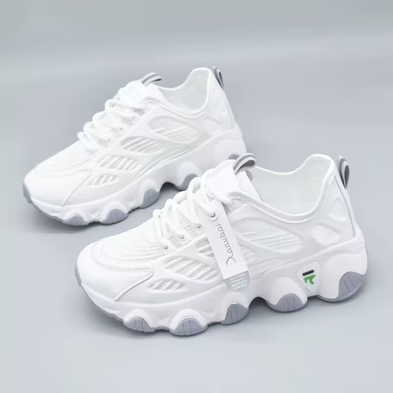여성을위한 아빠 신발 2025 새로운 여름 여성 신발 여름 얇은 중공 흰색 메쉬 신발 여성 통기성 메쉬 스포츠 신발