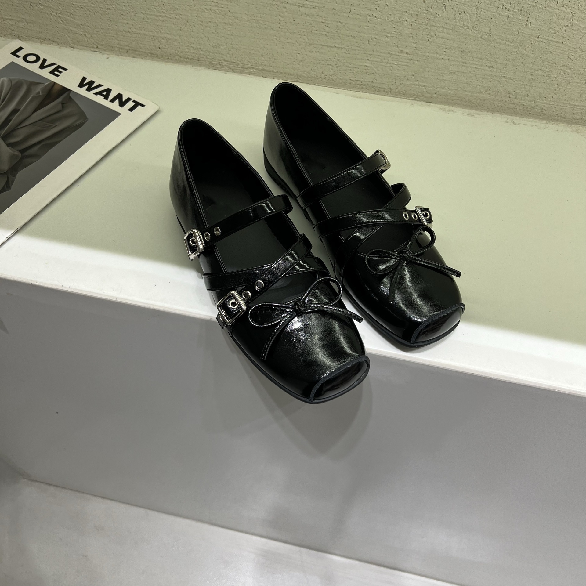 여성을위한 프랑스 실버 신발 복고풍 메리 제인 신발 2025 여성을위한 새로운 정품 가죽 보우 플랫 발레 신발