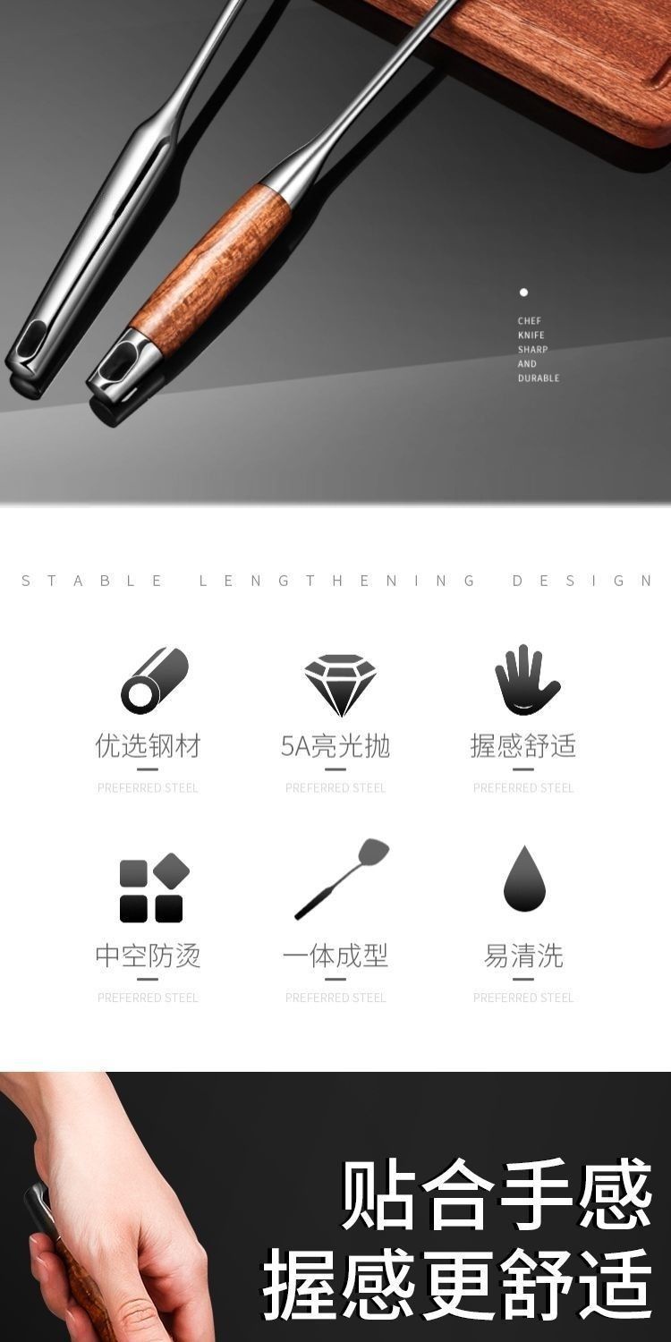 도매 304 스테인레스 스틸 주걱 세트 요리 주걱 로즈 우드 주방 가구 가정용 요리 스푼