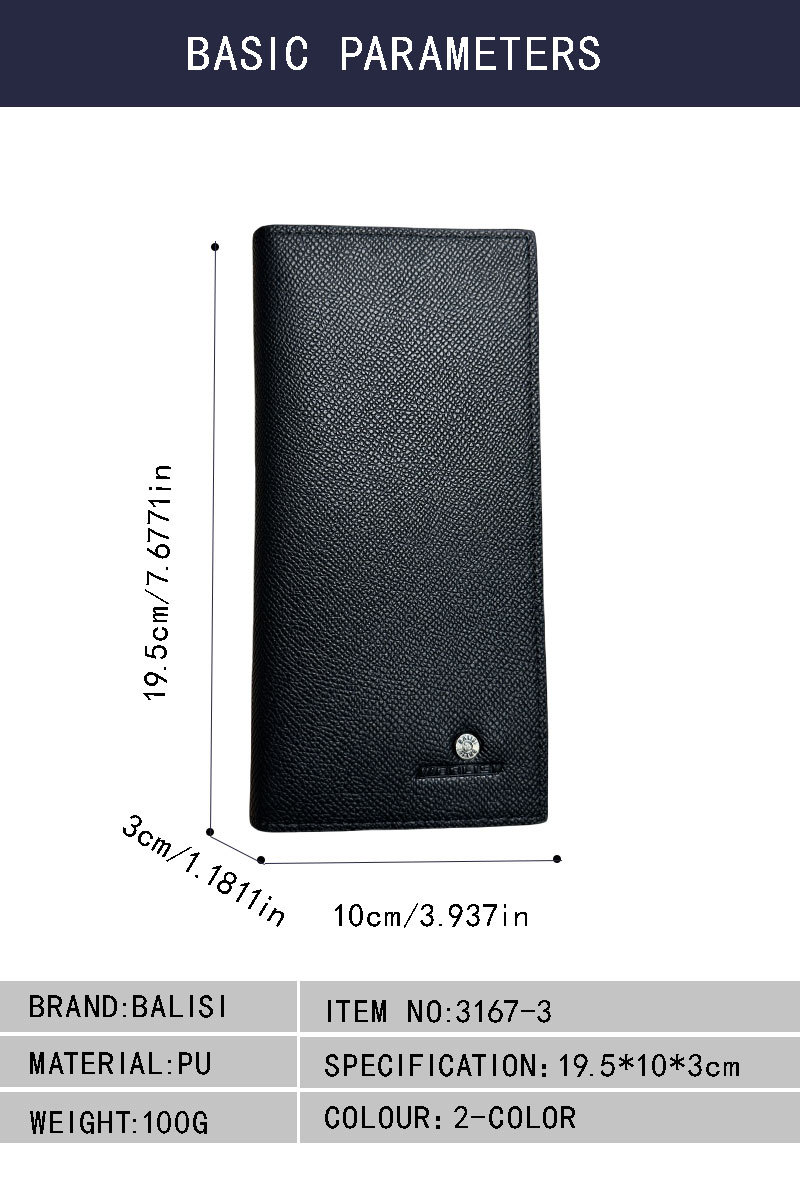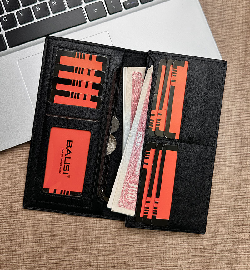 BALISI 신상 남성용 지갑, 패셔너블한 롱 멀티 카드 슬롯, 인기 초박형 부드러운 가죽 대용량 클러치 지갑