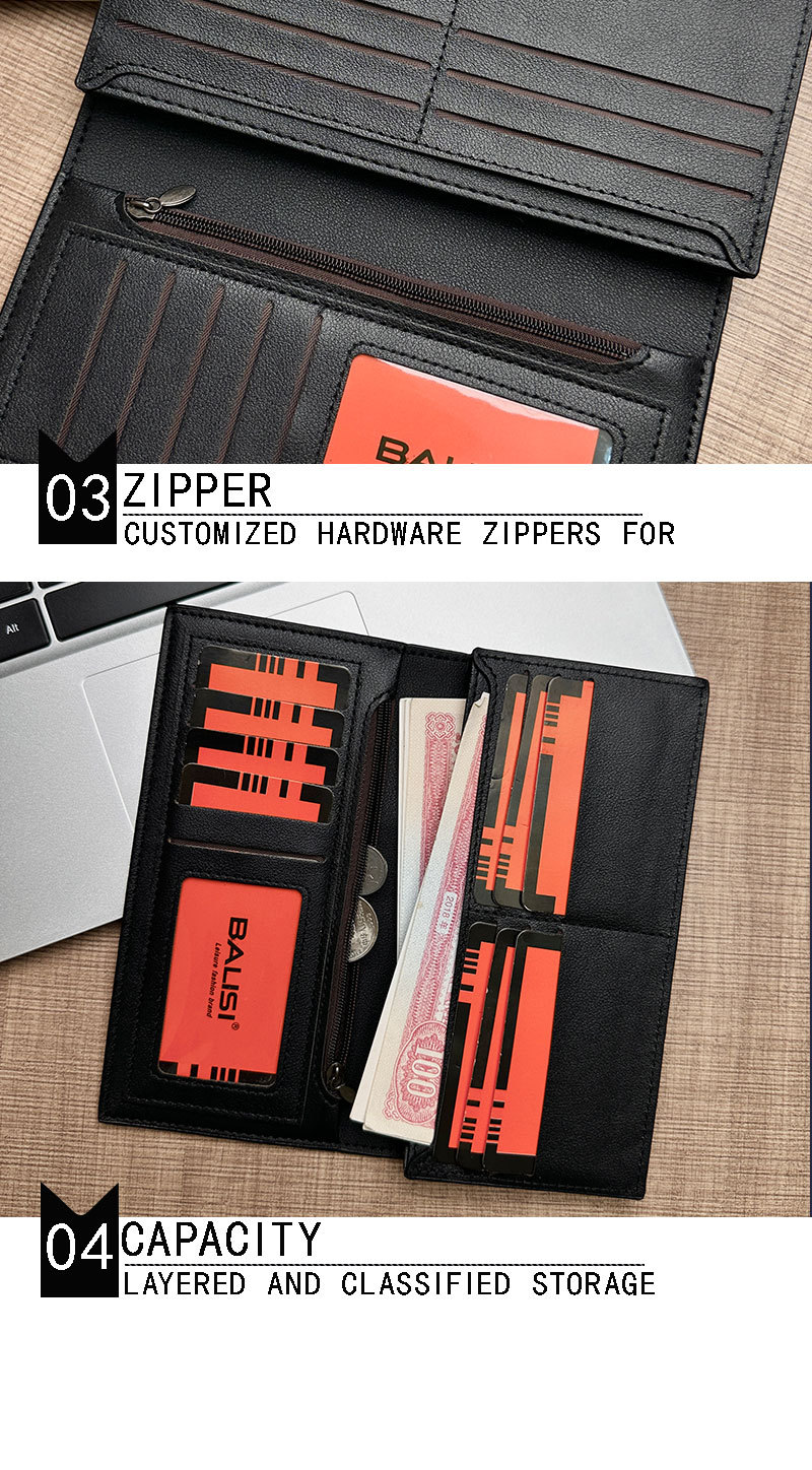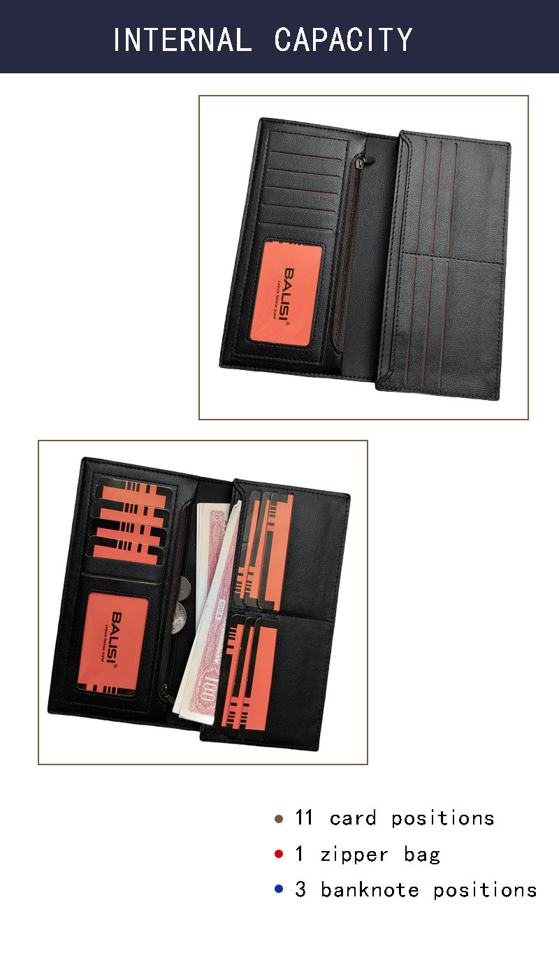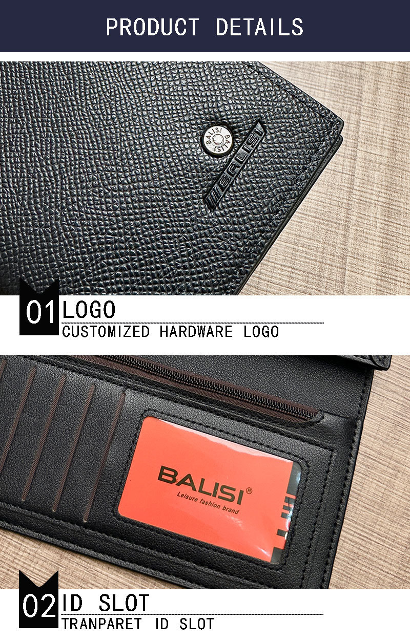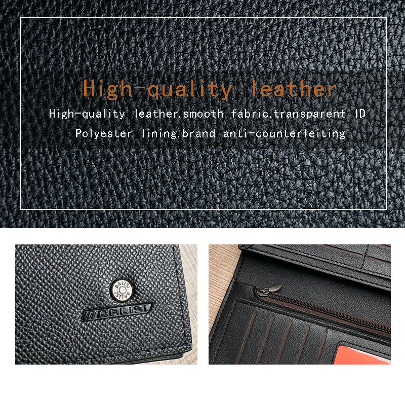 BALISI 신상 남성용 지갑, 패셔너블한 롱 멀티 카드 슬롯, 인기 초박형 부드러운 가죽 대용량 클러치 지갑스토어 가기