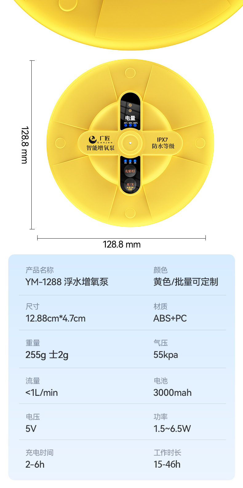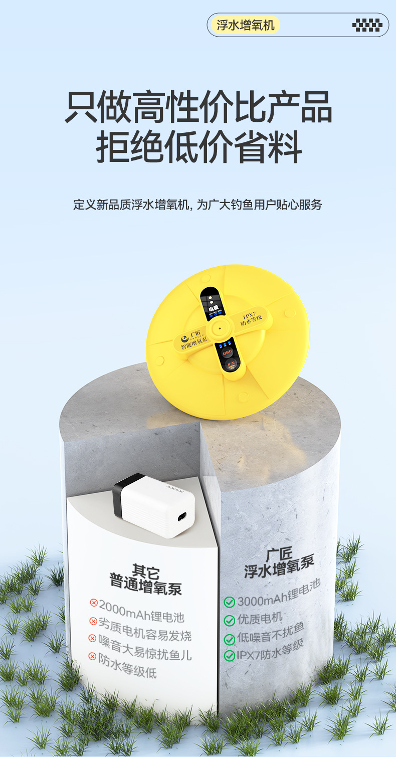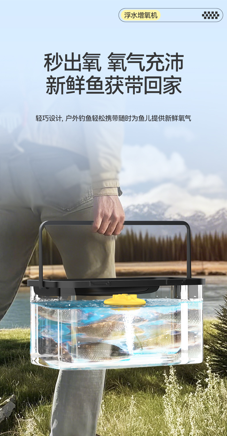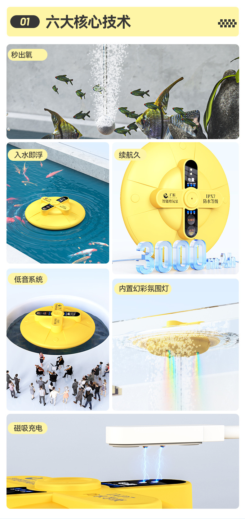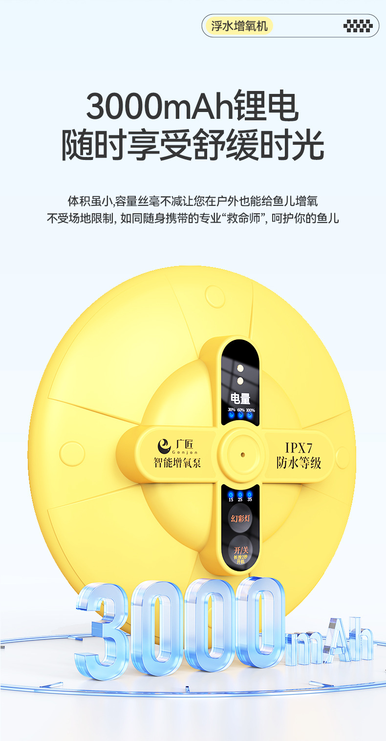 광장형 플라잉디스크 수중 산소공급기 휴대용 산소발생기 방수 소형 초저소음 에어펌프 수족관 산소펌프