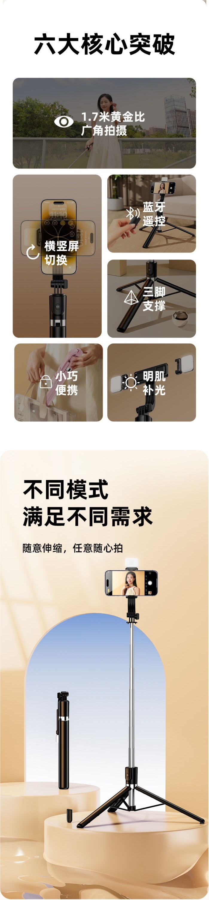 사진 촬영을 위한 원격 제어 바닥 삼각대, 블루투스 라이브 방송, 확장 및 접이식, 여행용 새로운 휴대용 휴대폰 셀카봉스토어 가기