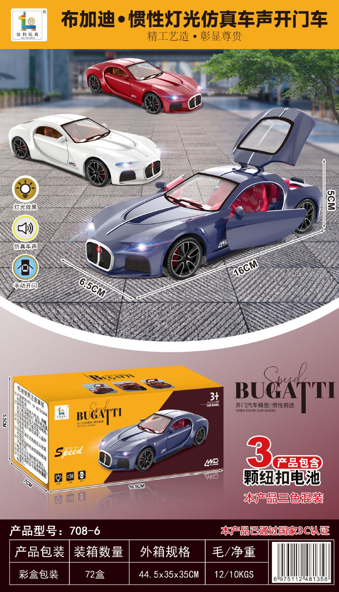 시뮬레이션 천 코디아닉 스포츠카 관성 전진 3 도어 라이트 음악 소년 레이싱 모델 장식품 어린이 장난감