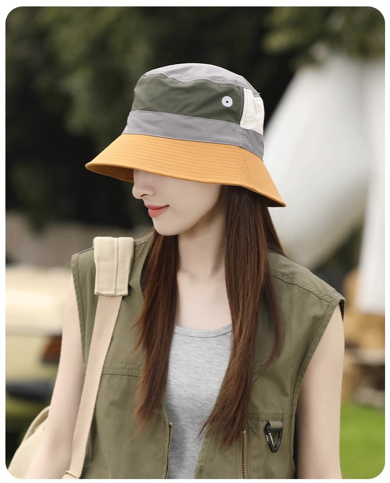 자외선 차단 모자 새로운 일본식 컬러 블록 버킷 모자 여성 봄 여름 다목적 캐주얼 캠핑 하이킹 모자스토어 가기