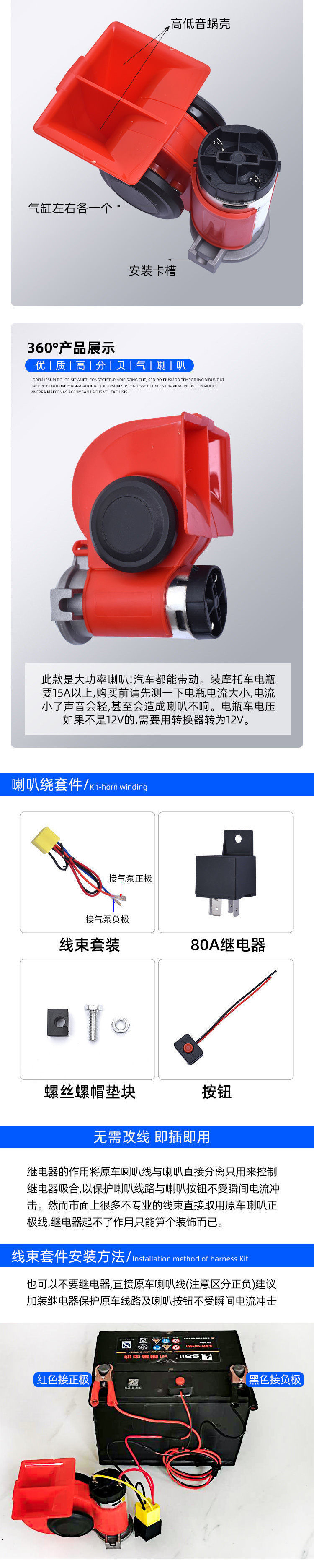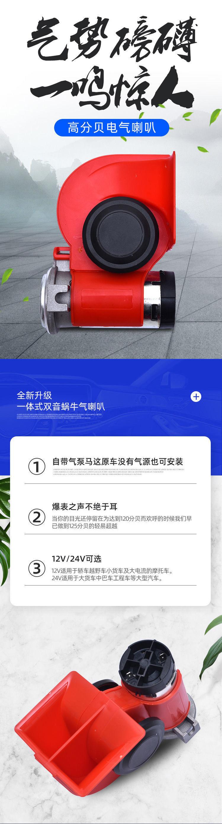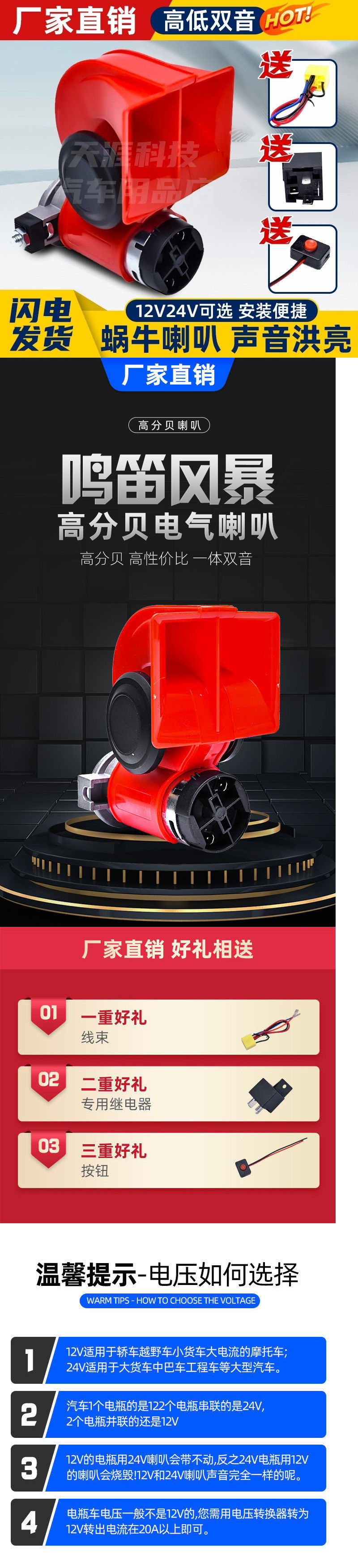 자동차 달팽이 경적 12v 전기 경적 트럭 24v 전기 슈퍼 시끄러운 오토바이 대용량 경적 고품질스토어 가기