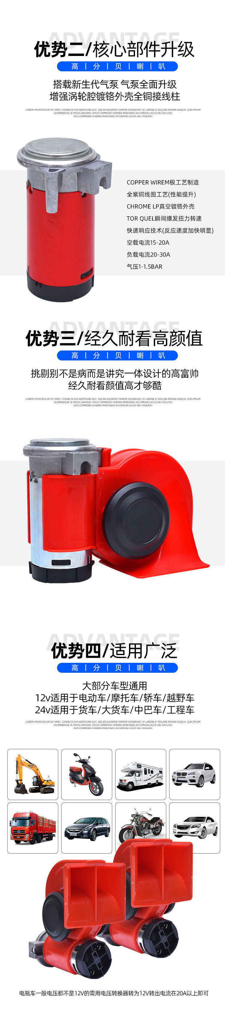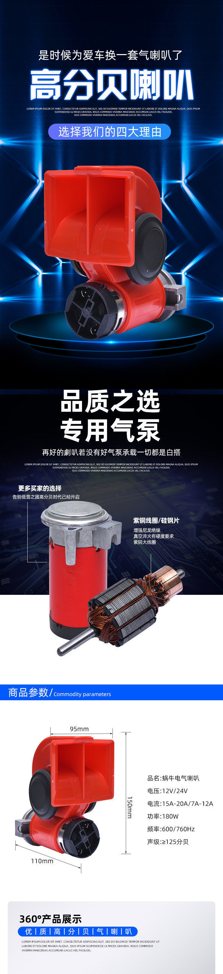 자동차 달팽이 경적 12v 전기 경적 트럭 24v 전기 슈퍼 시끄러운 오토바이 대용량 경적 고품질