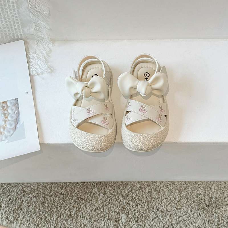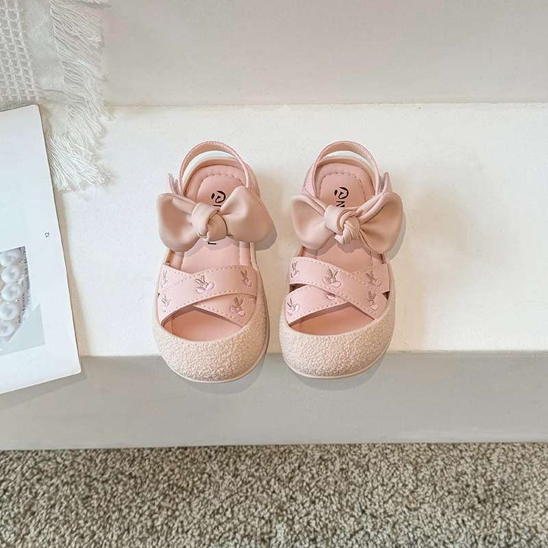 여자 Baotou 충돌 방지 샌들 여름 새로운 스타일 2025 작은 향기로운 스타일 수 놓은 부드러운 바닥 미끄럼 방지 아기 공주 해변 신발스토어 가기