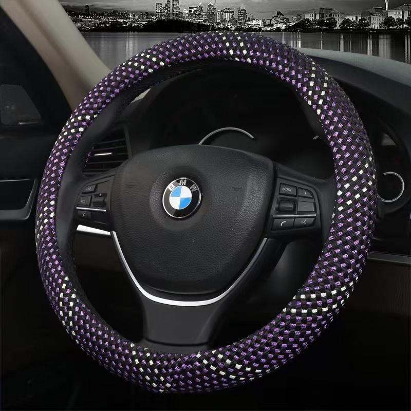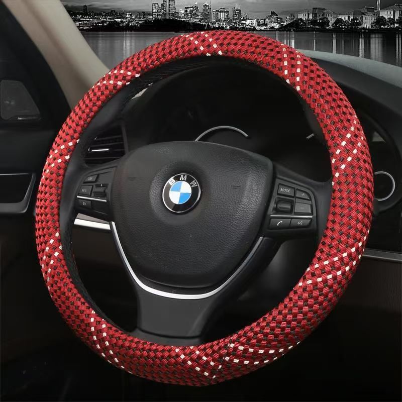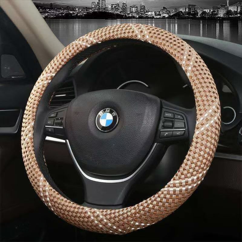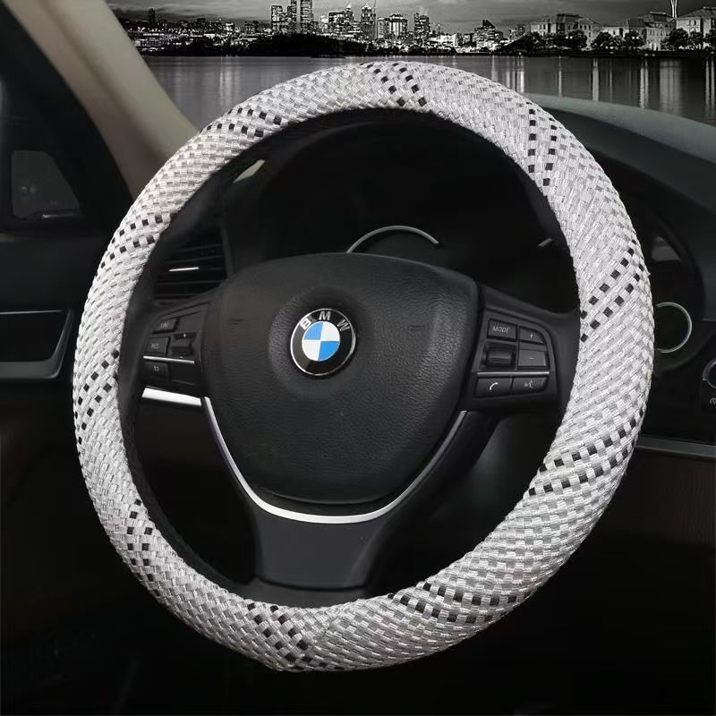손으로 짠 얼음 실크 자동차 핸들 커버, 미끄럼 방지, 초박형 자동차 핸들 커버, 통기성, 올 시즌 범용, 더블 일레븐 패턴스토어 가기