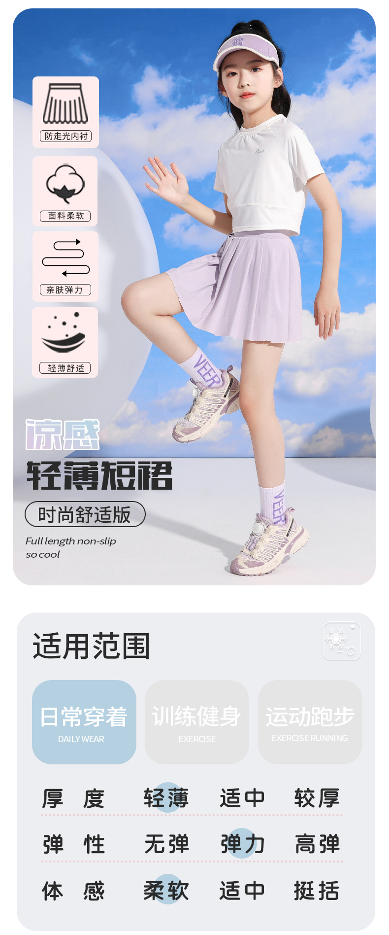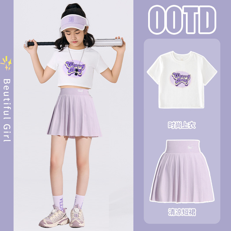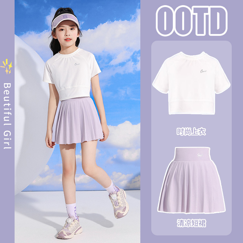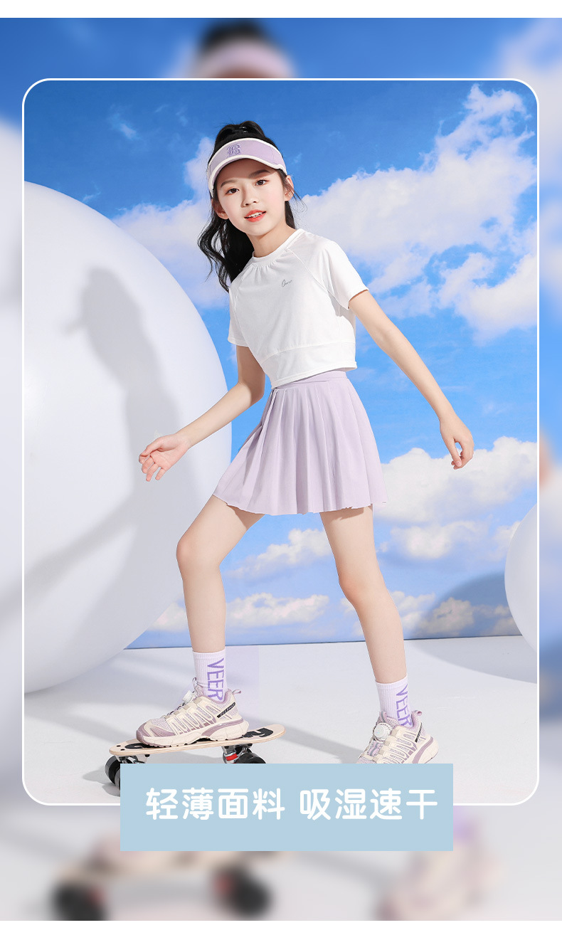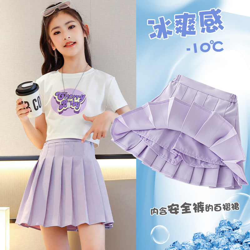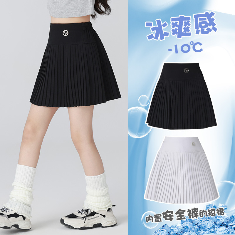 여자 스포츠 테니스 스커트 여름 2025 새로운 어린이 스커트 속건성 스커트 큰 어린이 얼음 실크 얇은 스커트스토어 가기
