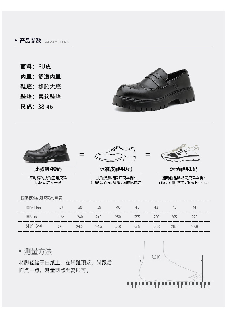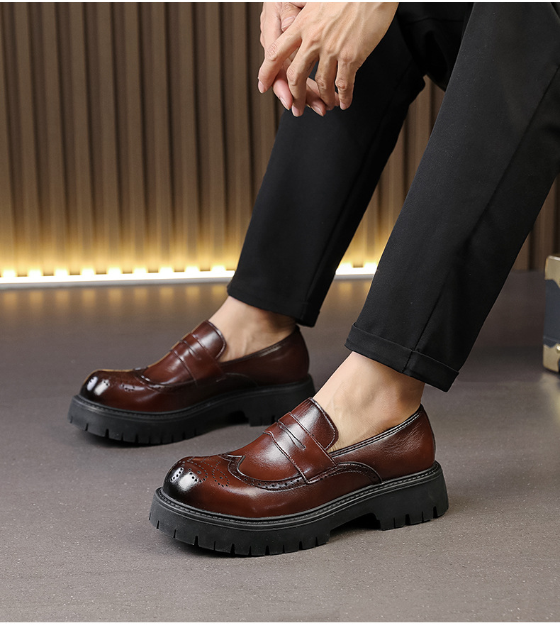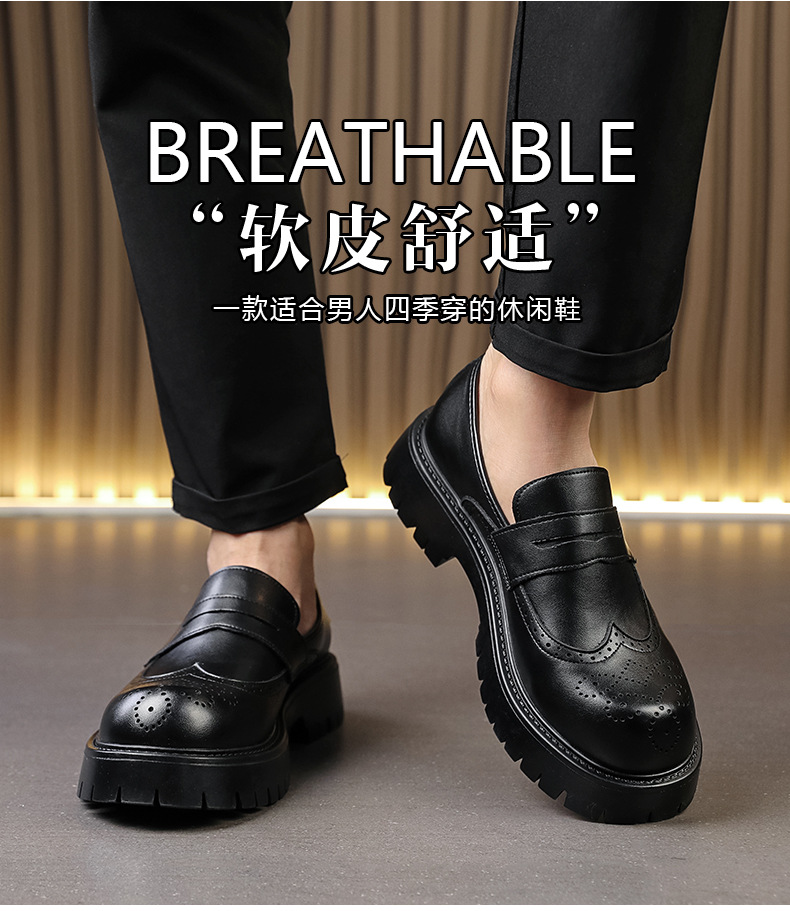 남성 캐주얼 스타일 가죽 신발 트렌디 빅 투 슬립 로퍼 남성 비즈니스 두꺼운 밑창 높이 증가 대형 4546 남성스토어 가기