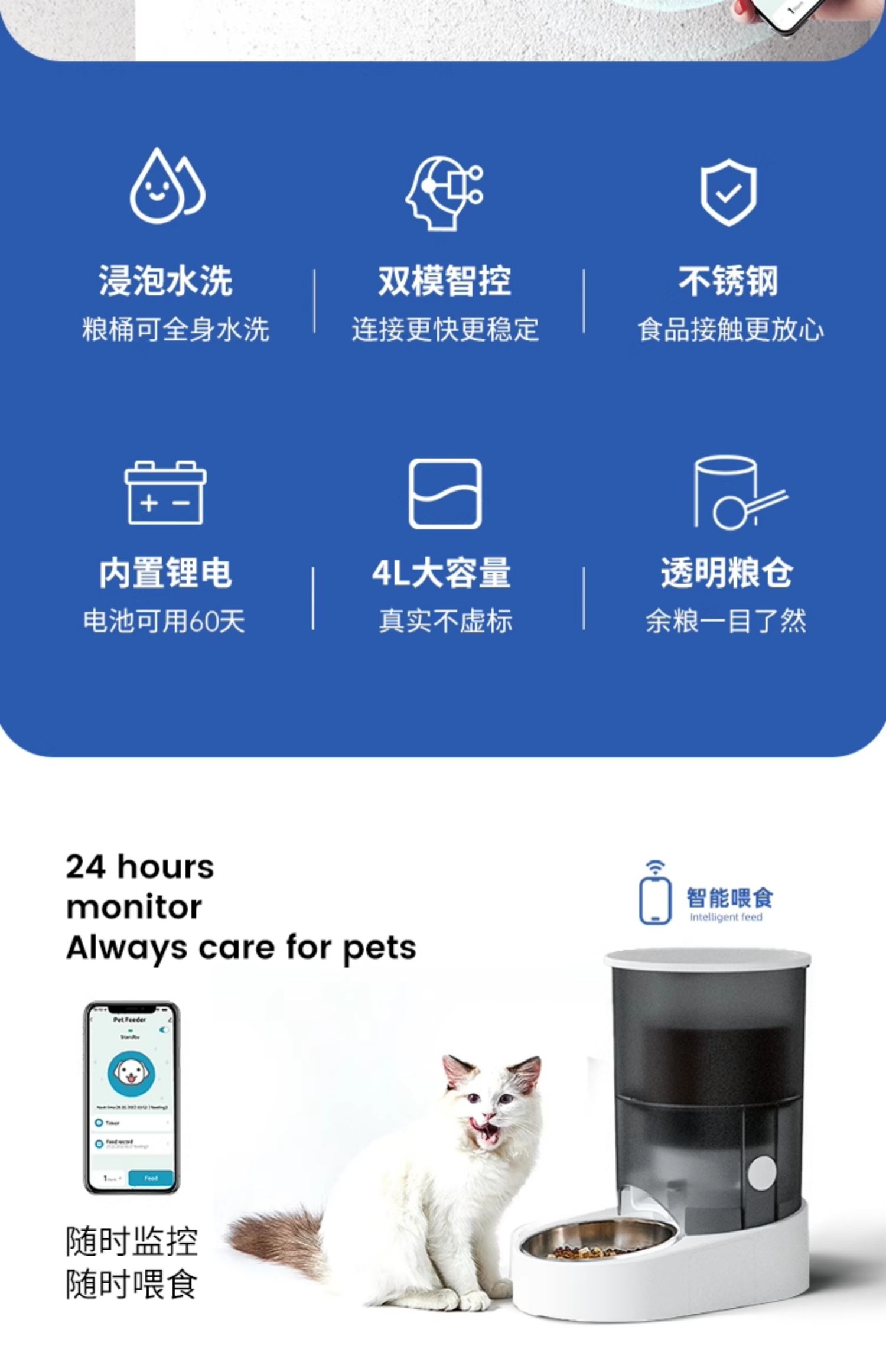 고양이 자동 급식기 충전식 wifi 타이밍 및 정량 애완동물 지능형 급식기 고양이 사료 및 개 사료 급식기스토어 가기