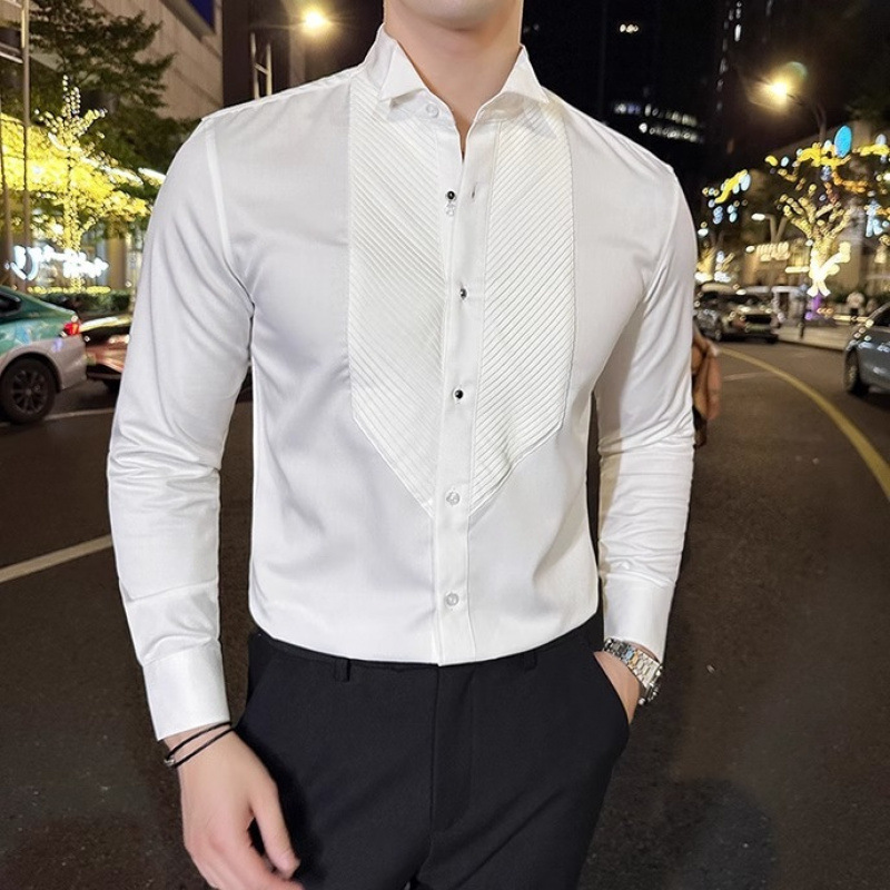 2025 봄 새로운 스타일 심플한 디자인 다재다능한 남성 셔츠 세련된 단색 고급 캐주얼 셔츠
