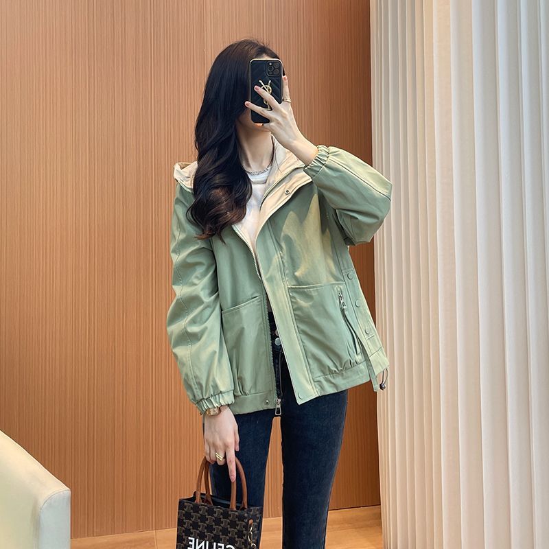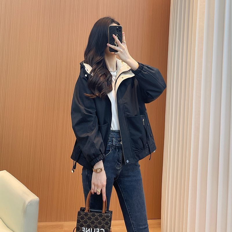 2025 봄 신작 여성 후드 캐주얼 다목적 소형 스포츠 윈드 브레이커 워크 재킷 여성 슬리밍 트렌드