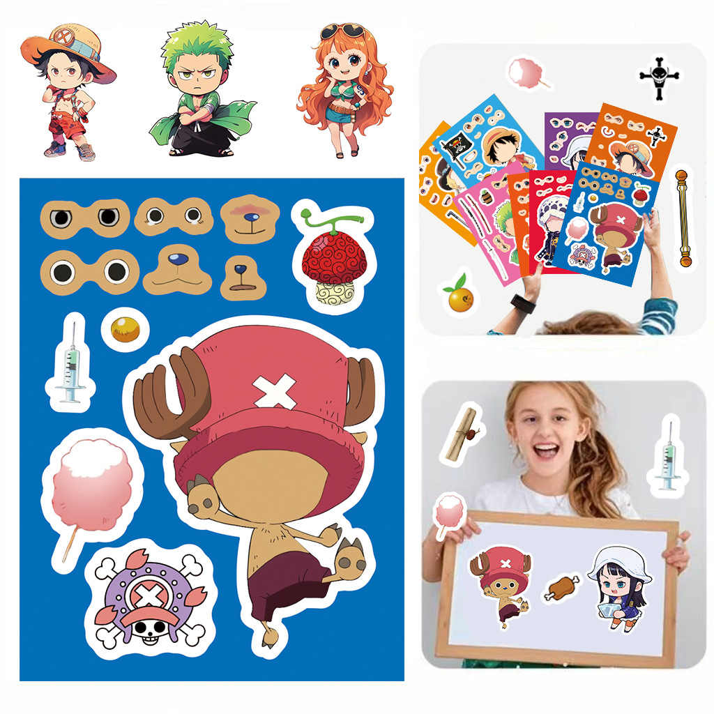 8 Q 버전 원피스 크로스보더 어린이 교육 얼굴 변경 DIY 게임 만화 장식 부모-자식 대화형 방수 스티커스토어 가기